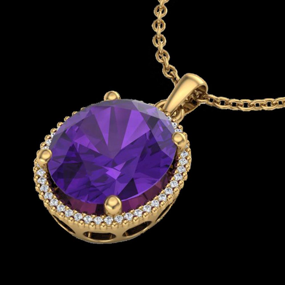 REF-78K2Y - SKU: 20602 ---- 10 ctw Amethyst & Micro Pave VS/SI Diamond Necklace 18k Yellow Gold