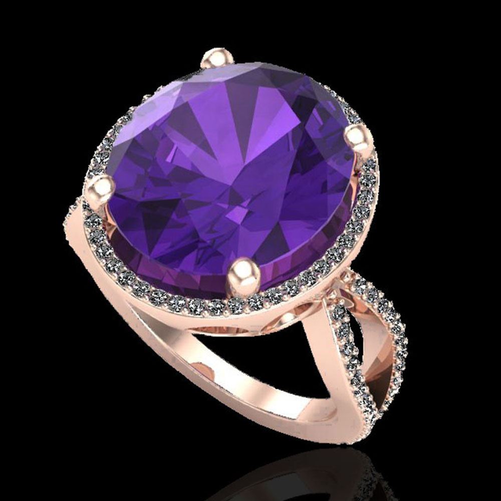 REF-55H2R - SKU: 20951 ---- 10 ctw Amethyst & Micro Pave VS/SI Diamond Ring 14k Rose Gold
