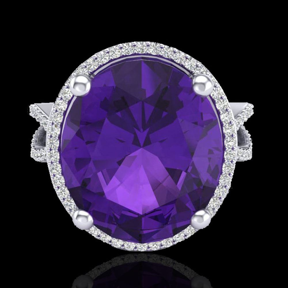 REF-80M2G - SKU: 20952 ---- 10 ctw Amethyst & Micro Pave VS/SI Diamond Ring 18k White Gold