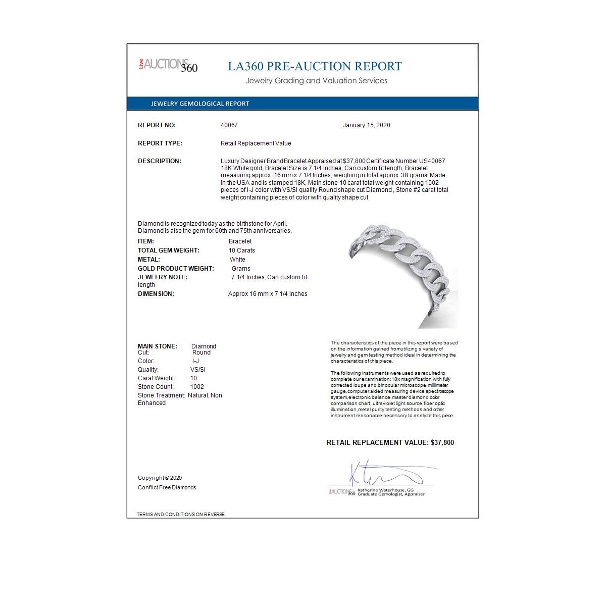 All sales are final, placing a bid is a legally binding obligation. All lots are sold as is, where is, with all the faults, imperfections, omissions and errors in the written description, estimates, appraisals, graphics and photography. USJL is not responsible for any errors or omissions in the description, graphics or photography provided or in the bidding software. Due diligence to verify the condition and description of a lot is the sole responsibility of the Bidder prior to placing any bid. Returns may only be made with the advance written authorization of USJL and are in USJL's sole discretion to approve. To request a return you must provide a written request fully explaining the basis for the return no later than 4 days after your receipt of the lot. Under no circumstances will any amounts other than the winning bid amount be refunded. A restocking charge of 19% of the full invoice amount may apply in USJL 's sole discretion. Any allowed returns must be received in exactly the same condition as when originally shipped to Buyer, or they will be returned to buyer at Buyer's cost. Any unauthorized returns will be refused. DELIVERY REFUSAL OF ITEMS SHIPPED BY US JEWELRY LIQUIDATION TO THE BIDDER CONSTITUTES AN UNAUTHORIZED RETURN IN DIRECT VIOLATION OF THESE GENERAL TERMS AND CONDITIONS.
