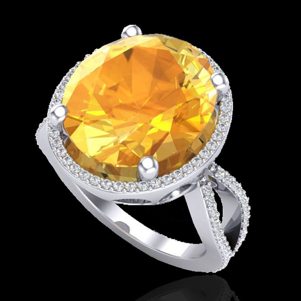 REF-80A2N - SKU: 20958 ---- 10 ctw Citrine & Micro Pave VS/SI Diamond Ring 18k White Gold