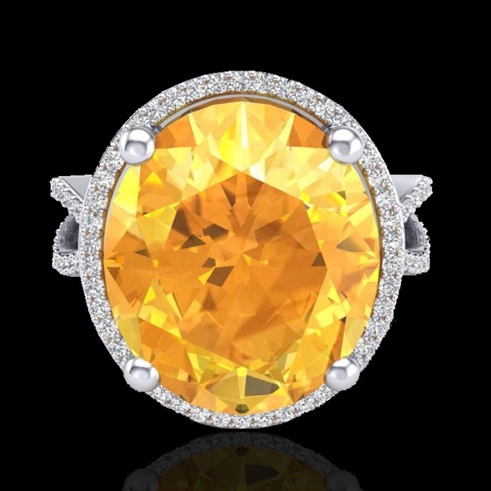 REF-80A2N - SKU: 20958 ---- 10 ctw Citrine & Micro Pave VS/SI Diamond Ring 18k White Gold