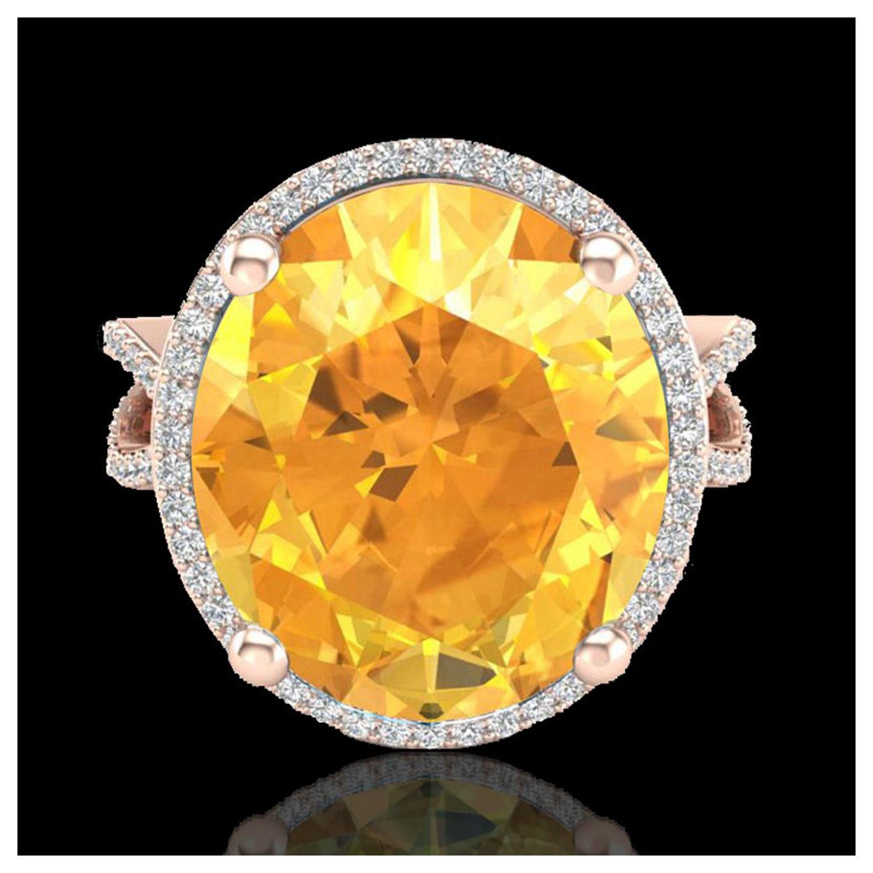 10 ctw Citrine & VS/SI Diamond Ring 14K Rose Gold