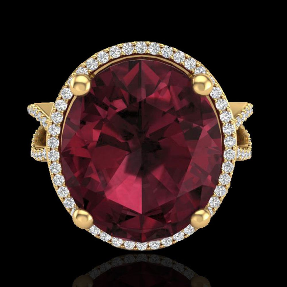 REF-80X2A - SKU: 20964 ---- 10 ctw Garnet & Micro Pave VS/SI Diamond Certified Ring 18k Yellow Gold