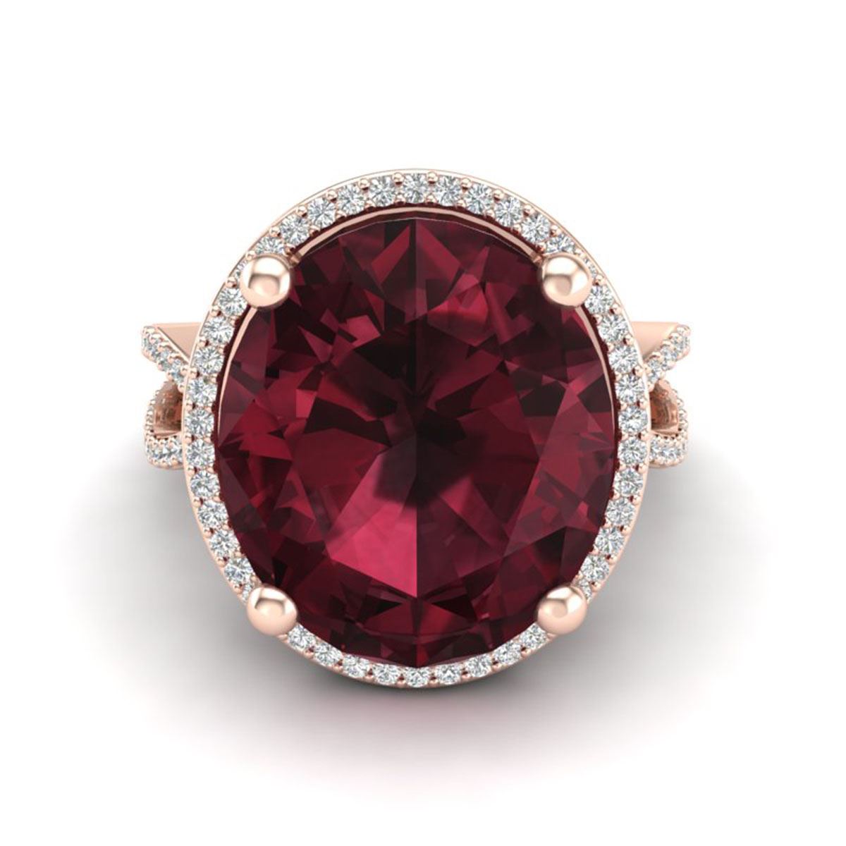 REF-66N7A - SKU:20962 ---- 10 ctw Garnet & VS/SI Diamond Ring 14K Rose Gold