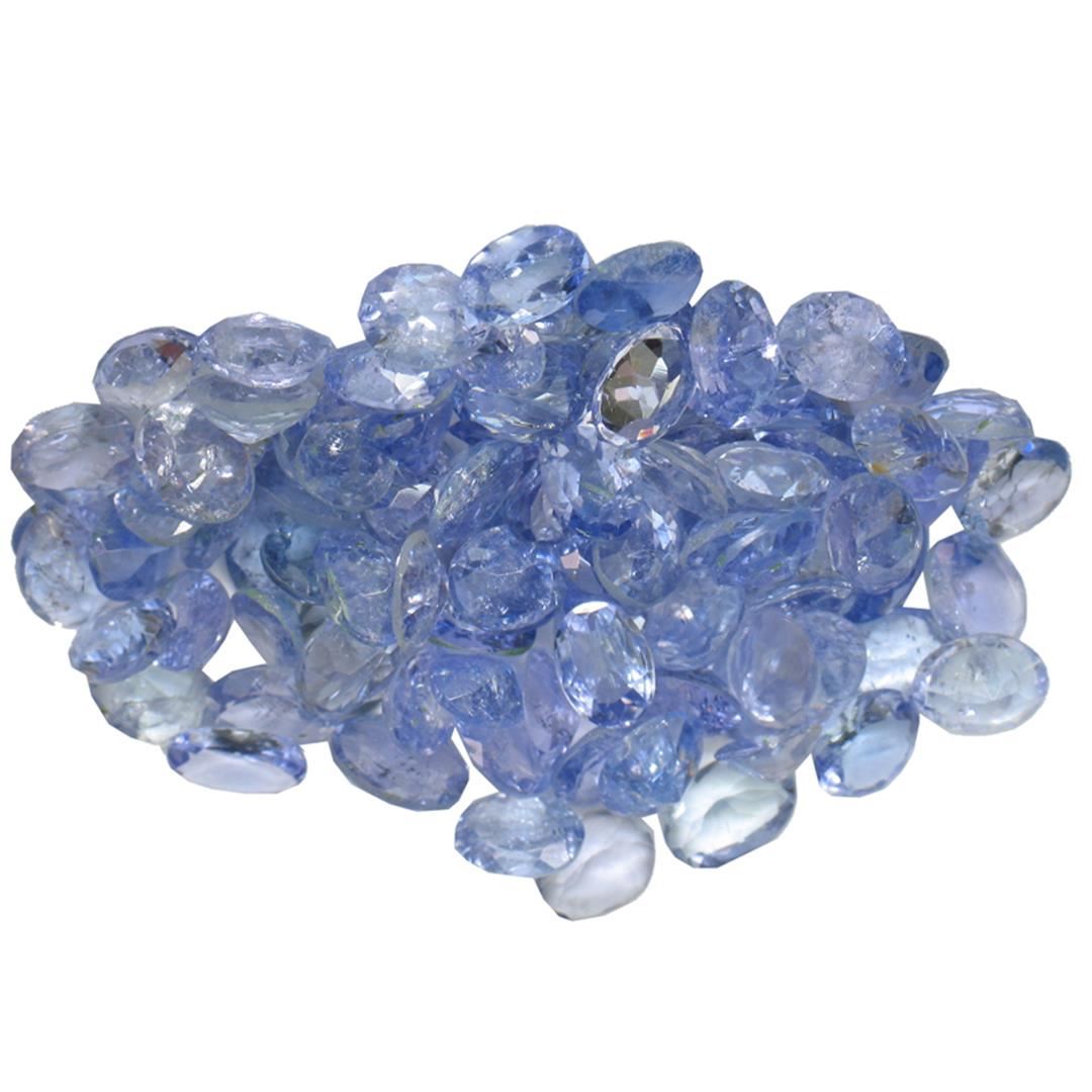 Forty oval mixed cut natural tanzanites, measuring 4.00 x 3.50 x 2.63mm, exact total weight 10.00ct., clarity is slightly included, type I, medium dark, very slightly grayish, violetish blue color, (GIA vB 6/3), cut is good. Measurements & the color grade are an average for the group, Color grade is an average for the group, Transmitting light with no distortion, transparent, Naturally occurring internal & external characteristics are present, Indications of multiple laboratory enhancements, including high temperature heat treatment. Westfield Appraised at $960.00.