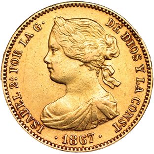 In order to comply with the current spanish legislation buyers should bear in mind that the export of coins over 100 years old require the issuance of an Export License by the Ministry of Culture, regardless of the country of destination. This process normally takes between 4 to 8 weeks.