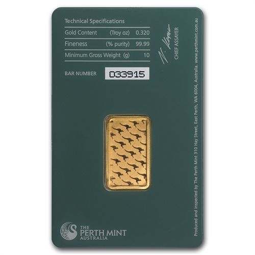10 gram Perth Mint Gold Bar .9999 Fine (In Assay) **|**|** Denomination: 20 ; MSRP: $800