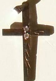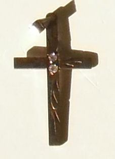 with 2 small diamonds stones marked 10 karat YELLOW gold, this cross is about 1 inch high by 1 /2" wide beautiful to use any time; perfect for St-Valentine or any other occasion or to add to your collection;