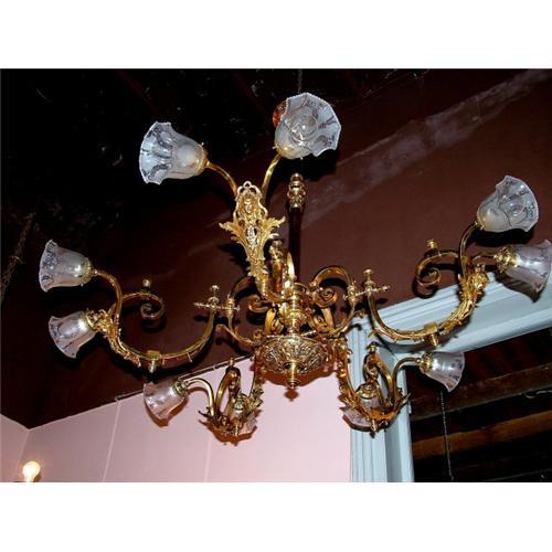 A fantastic French Bronze foundry Chandelier, 10 lights ,originally GAS later converted to electric,made about 1880 after the Second Empire Style, a period piece, measuring 42 inches H (adjustable)and 50 inches wide, rewired to U.S. standard in excellent conditions. Shipping within U.S. $ 385, including wooden crate and insurance.