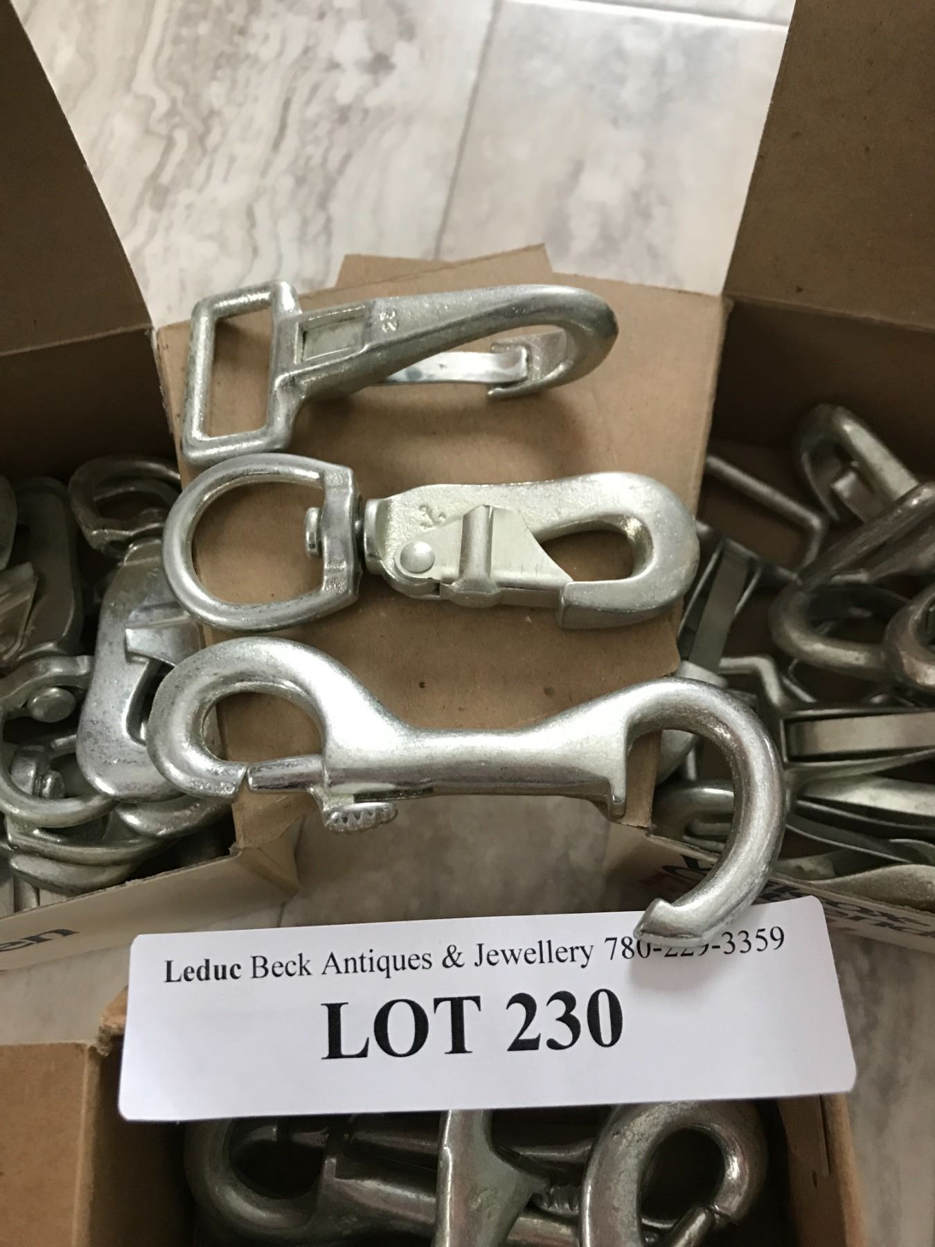 Open end snaps (10 pc / 1 box), Swivel eye snaps (3/4", 1 box / 10 pc), saddle snap (1") (10 pc / one box)