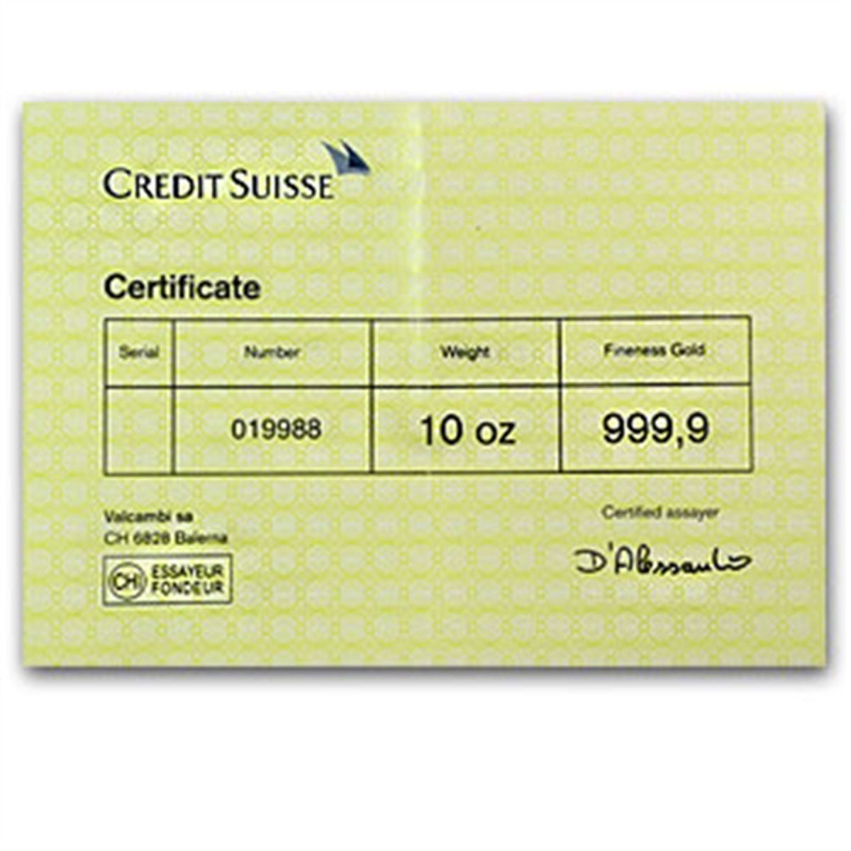 10 oz Credit Suisse Gold Bar .9999 Fine (With Assay)