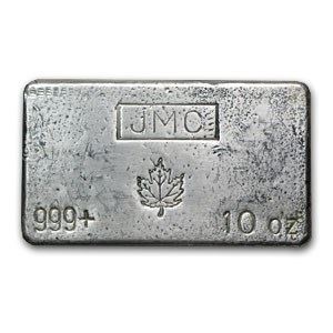 10 oz Silver Bar - Johnson Matthey Canada (Poured, Maple Leaf)