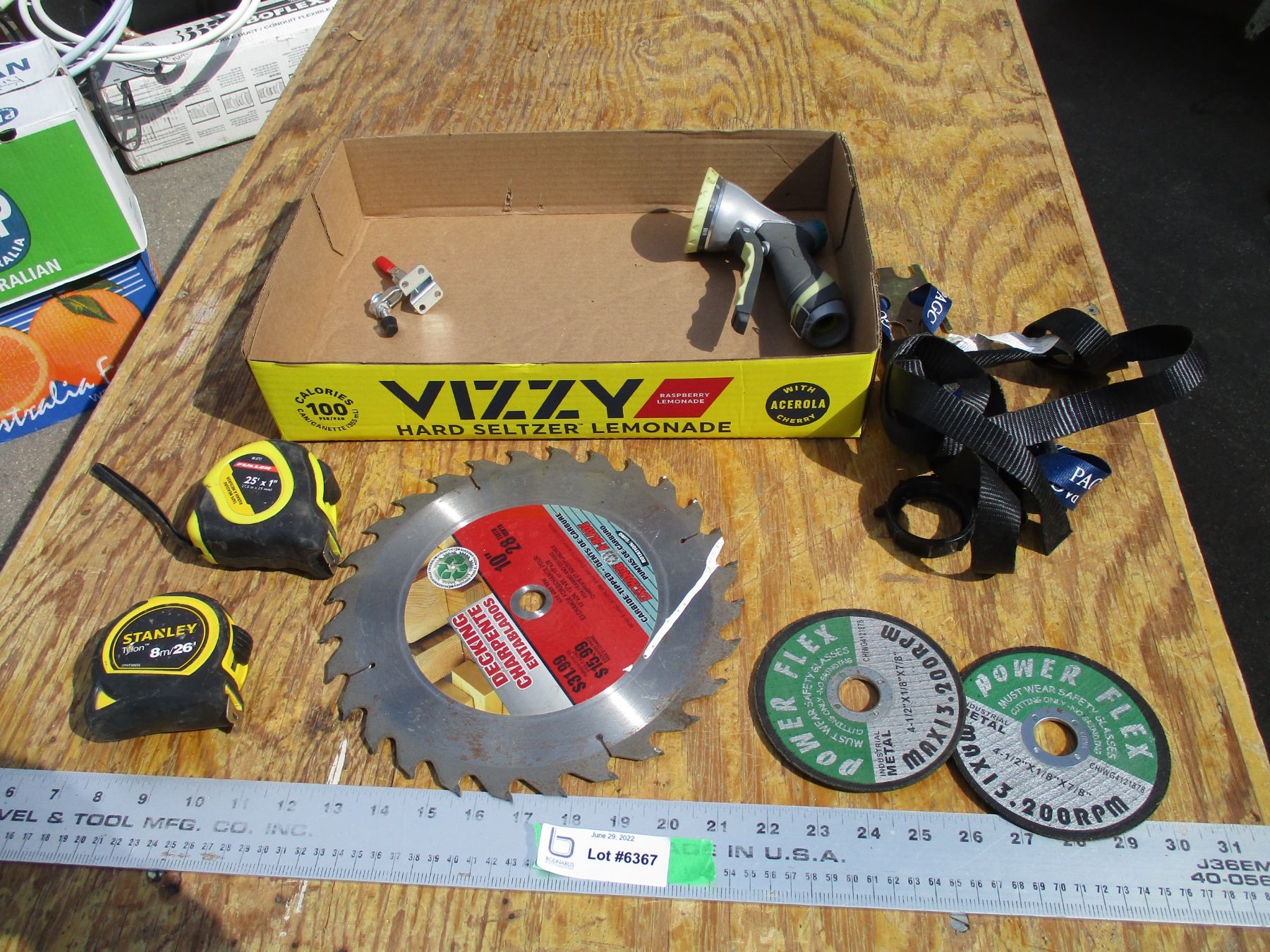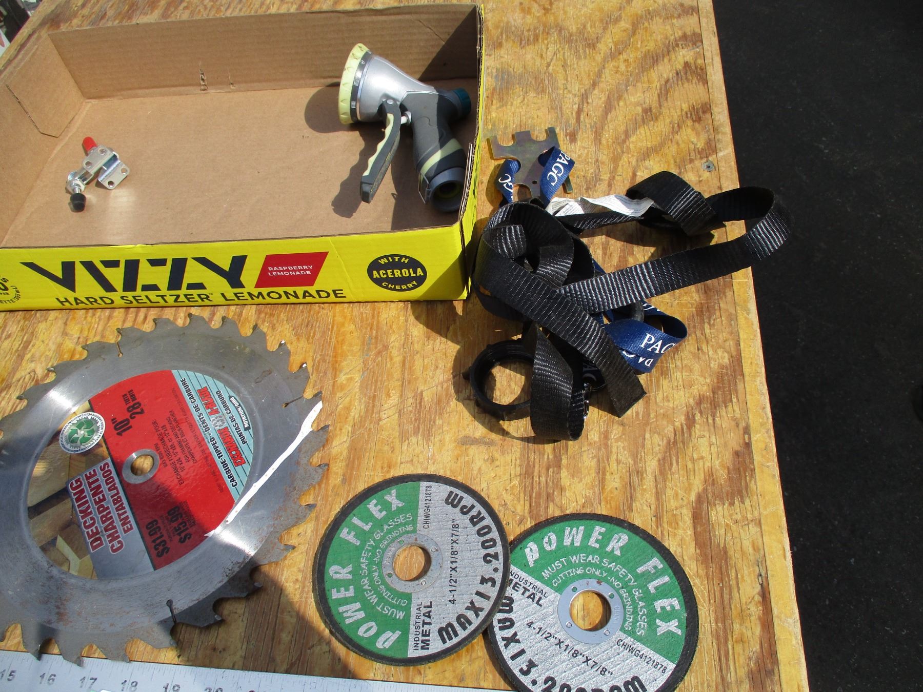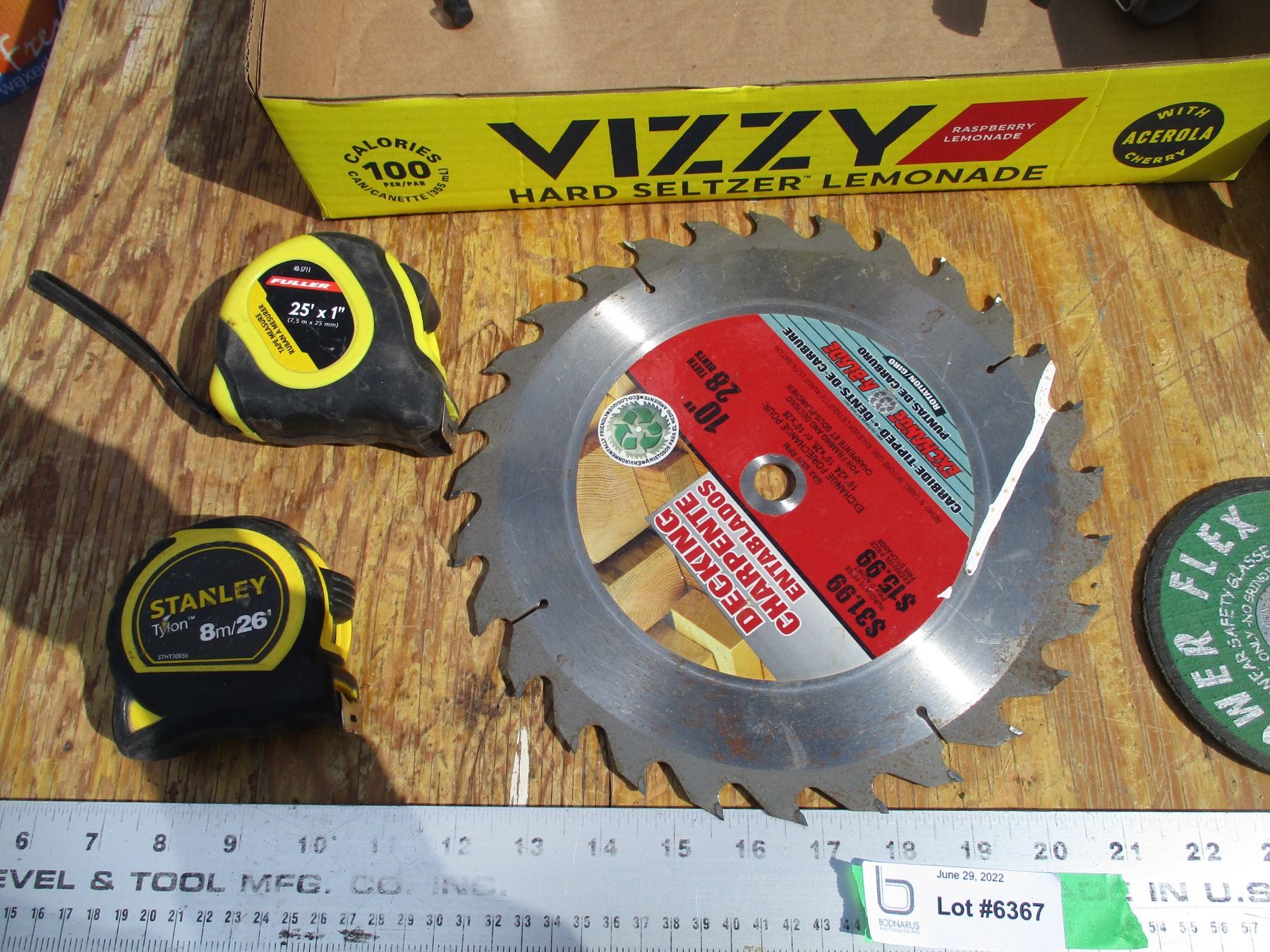 10" saw blade, tape measures, misc