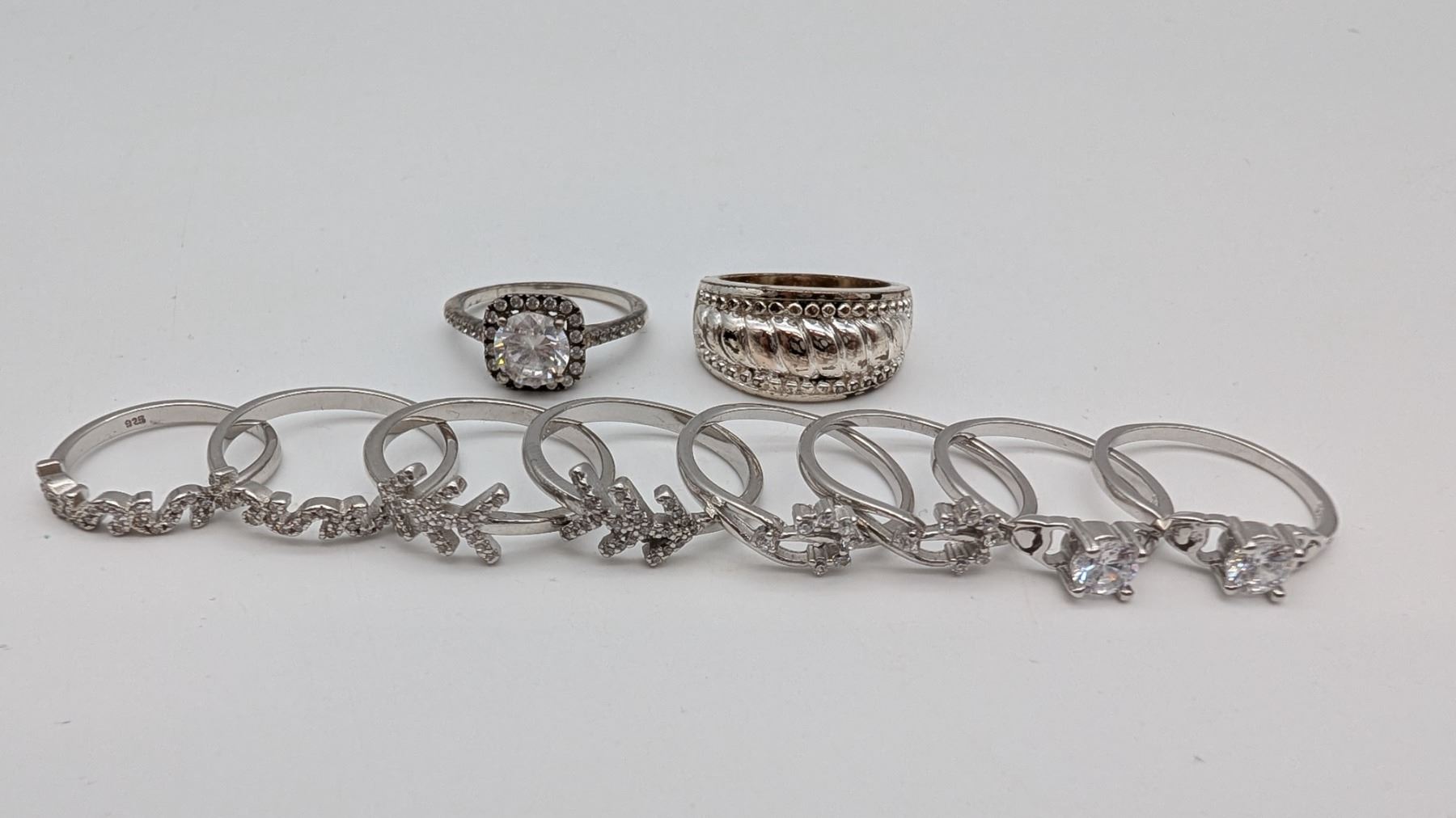 10 silver rings. all marked .925