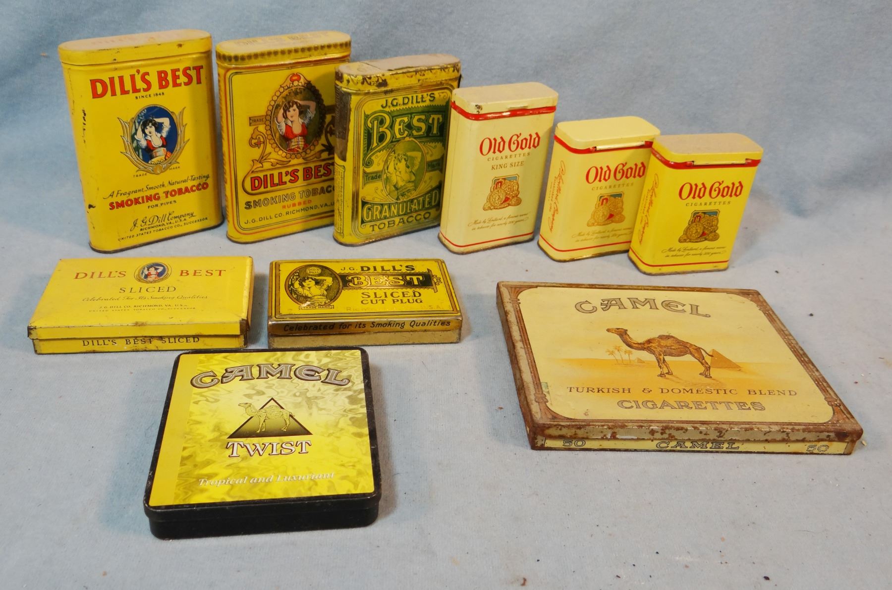 (10) tobacco tins, Camel, Camel Twist, Old Gold and others, assorted sizes
