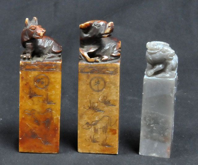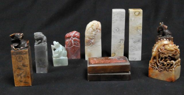 Including: Shou Shan ink set, various soapstone stamps, jade piece. Various sizes. Please read our terms of sale.