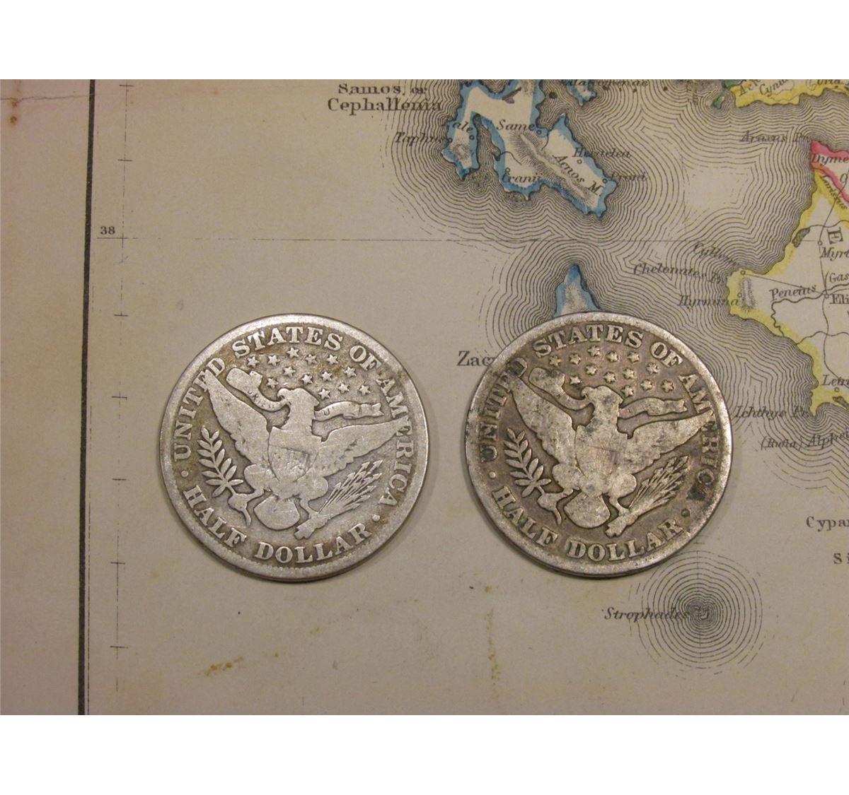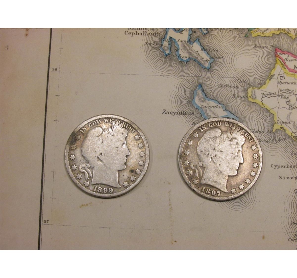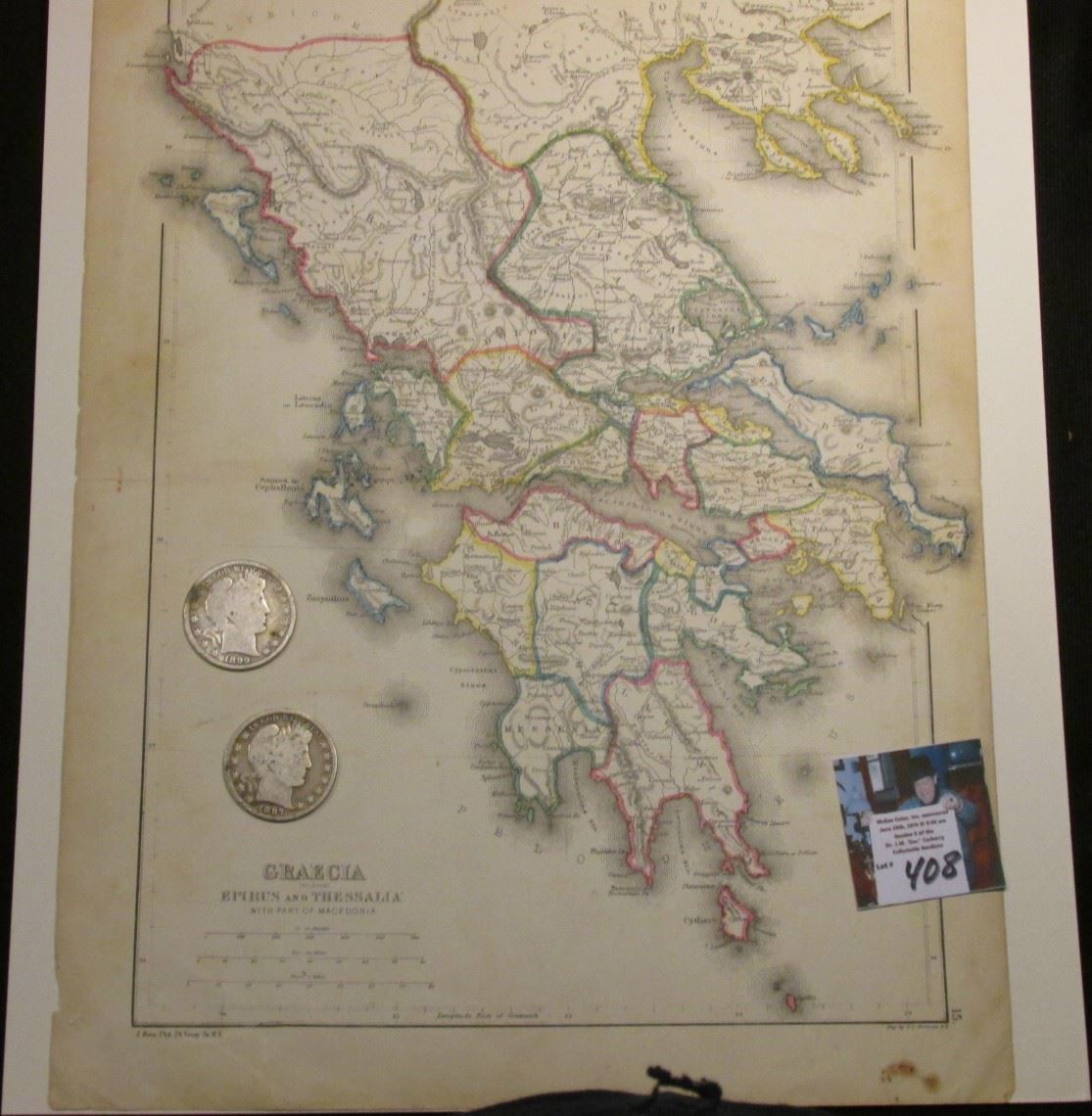 10" x 13" Map "Graecia including Epirus and Thessalia with Part of Macedonia", ready for framing; & 1897 P & 99 P Mint Barber Half Dollars in G-AG.