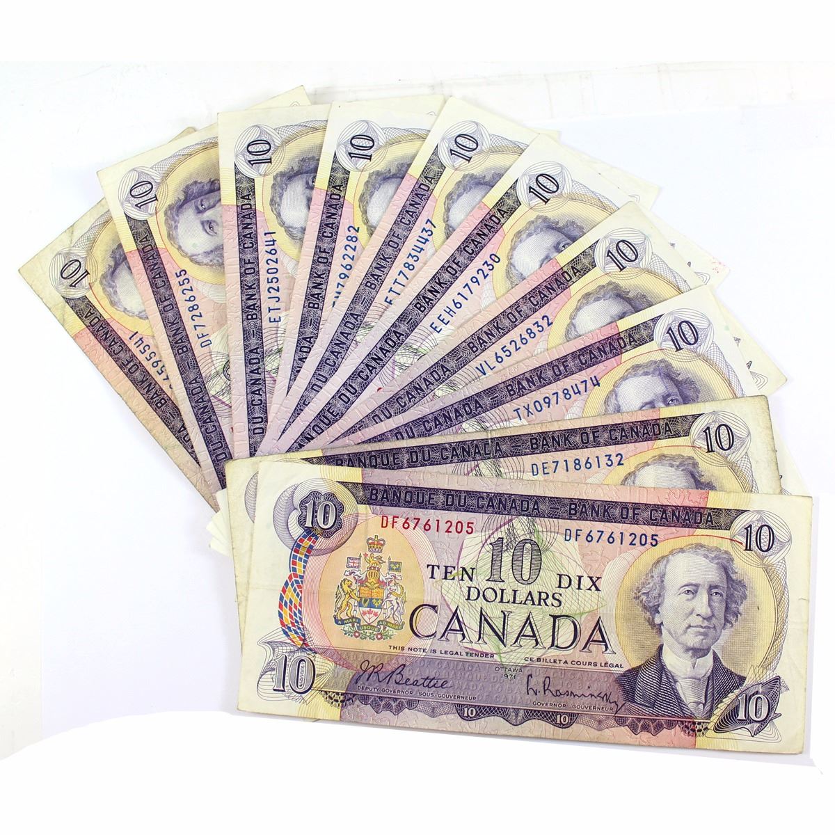 10 x 1971 $10.00 Canada Notes from the Bank of Canada