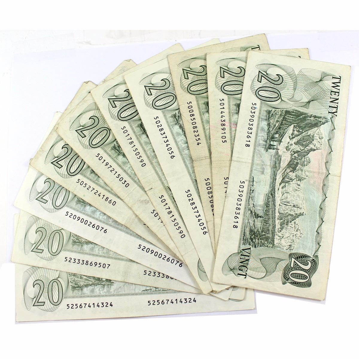 10 x 1979 $20.00 Canada Notes from the Bank of Canada