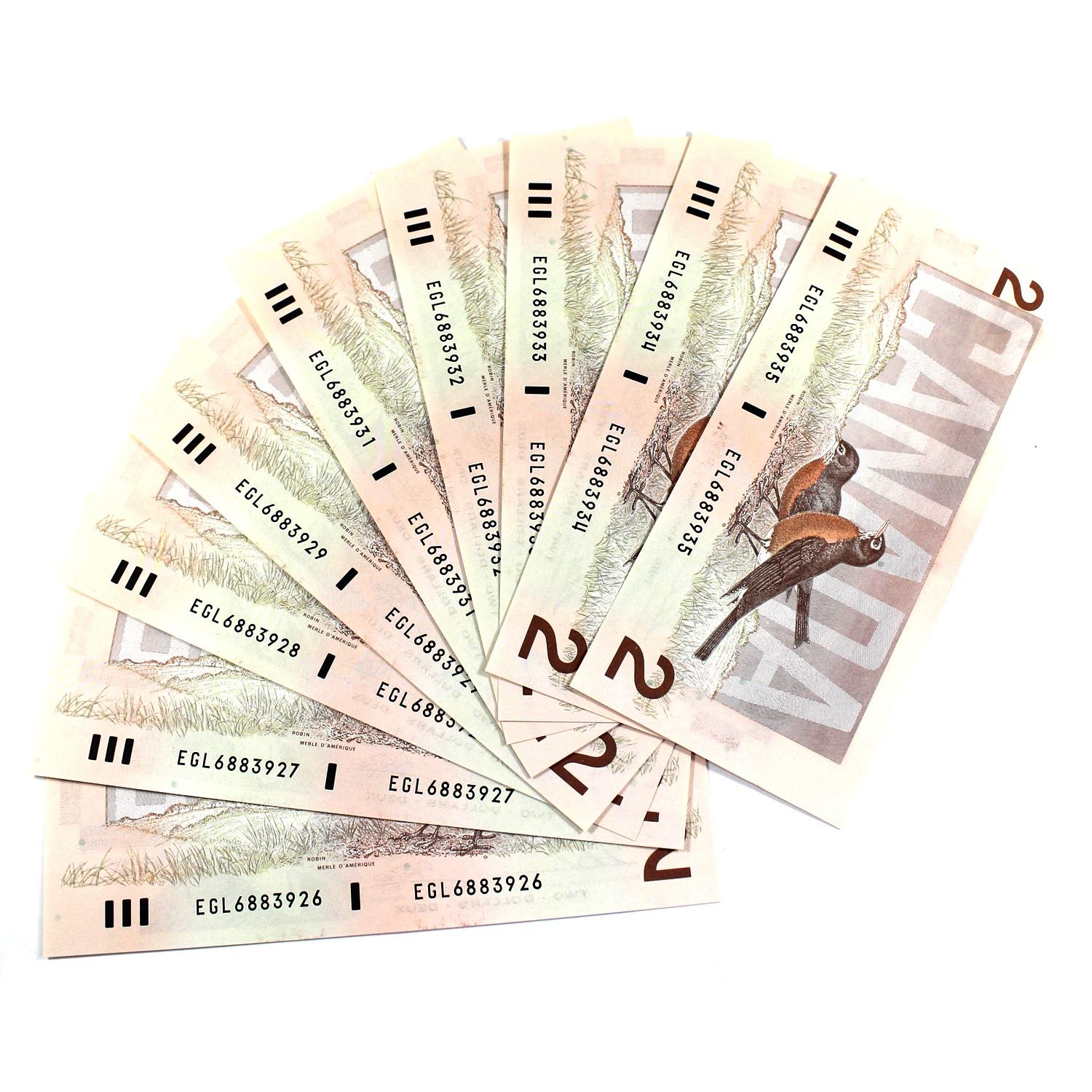 10 x 1986 $2 Canada Notes EGL with Consecutive Serial Numbers, Thiessen-Crow Signature.