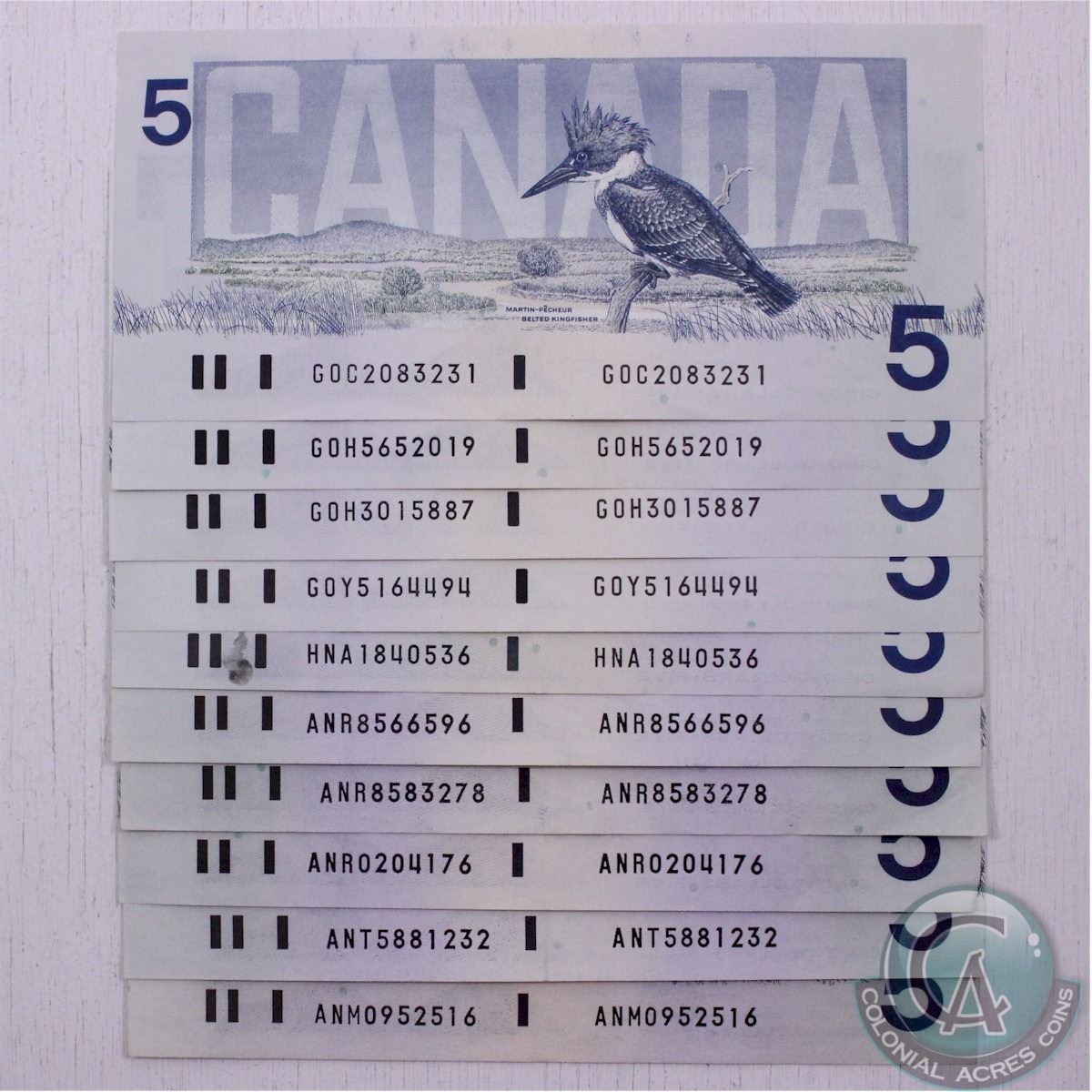 10 x 1986 $5.00 notes in average circulated condition.