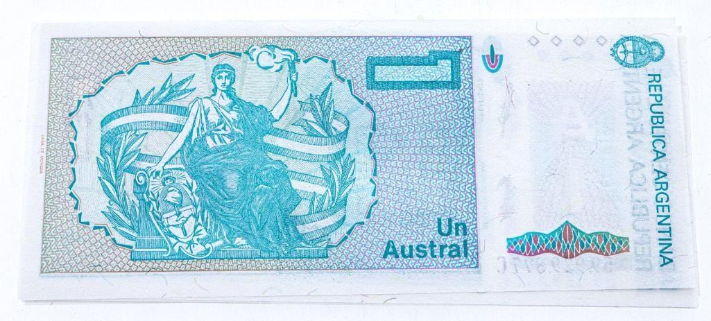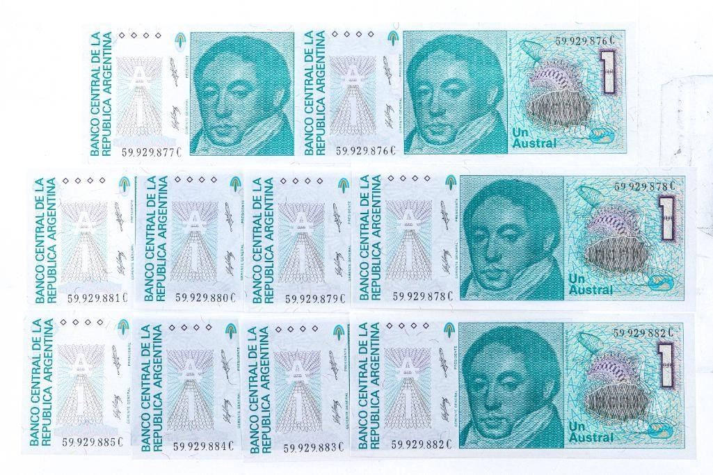 10 x Banco Central La Republica Argentina Un Austral 1 UNC (In Sequence)