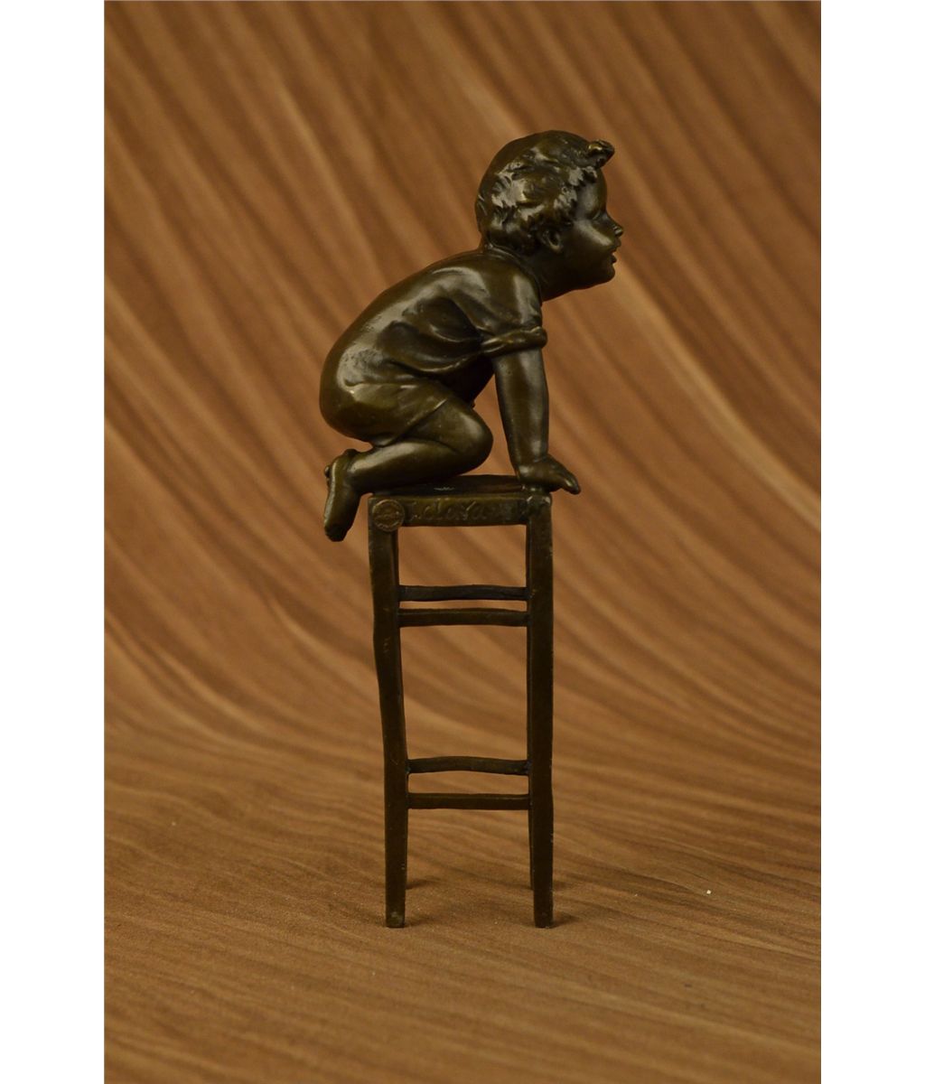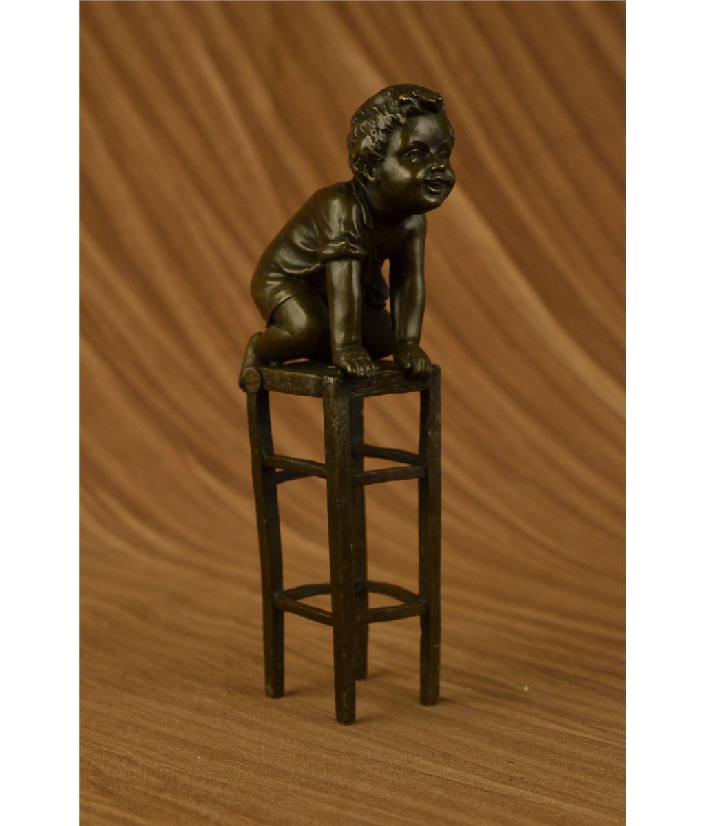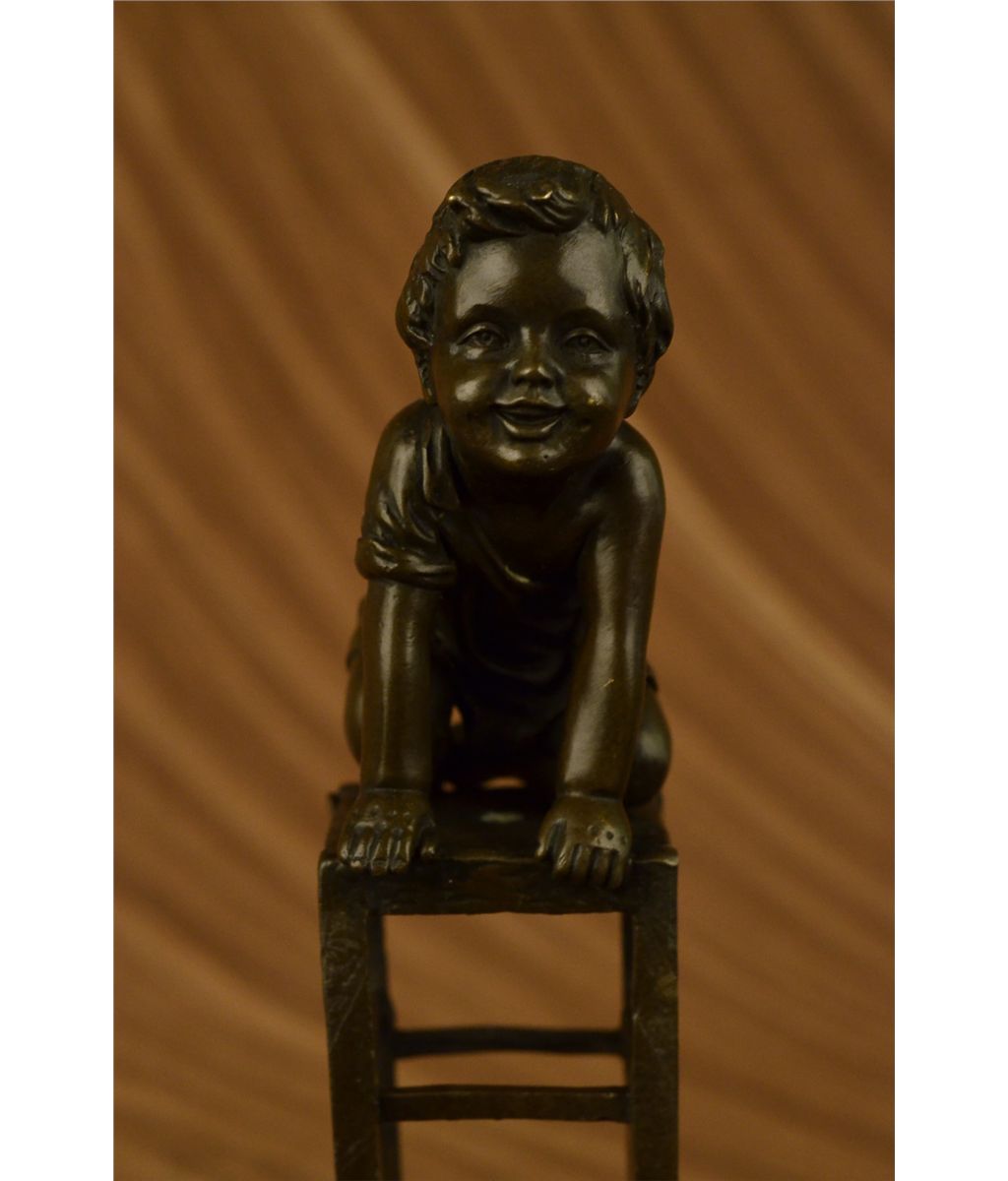 11YRD57180 There Is Nothing More Precious Than The Innocence Of A Young Child At Play. After The Days Of Late Night Bottle Feedings And Before The Pouty Dog Days Of The Terrible Teens, There Is The Sweet Curious Days Of Childhood. When Your Little One Takes His Or Her First Steps And Is A Ball Of Playful Energy. This Timeless Little Boy Crawls On A Stool That He Most Likely Flipped Over Much To His Mother'S Heart-Stopping Dismay. But Fear Not, He Isn'T Hurt, He'S Gleeful. His Chubby Face Lights Up With Amusement. He Crawls Across The Legs Of The Stool On His Hands And Knees, And Looks For His Mother'S Undivided Attention.This 100% Bronze Sculpture Is In A Brown Patina. It Was Handmade And Carefully Detailed, Cast Using The "Lost Wax Method." It Is Signed By The Artist Juan Clara...................SHIPPING USA: $15....HI, ALASKA, CANADA: $35...ALL OTHER COUNTRIES: $59
