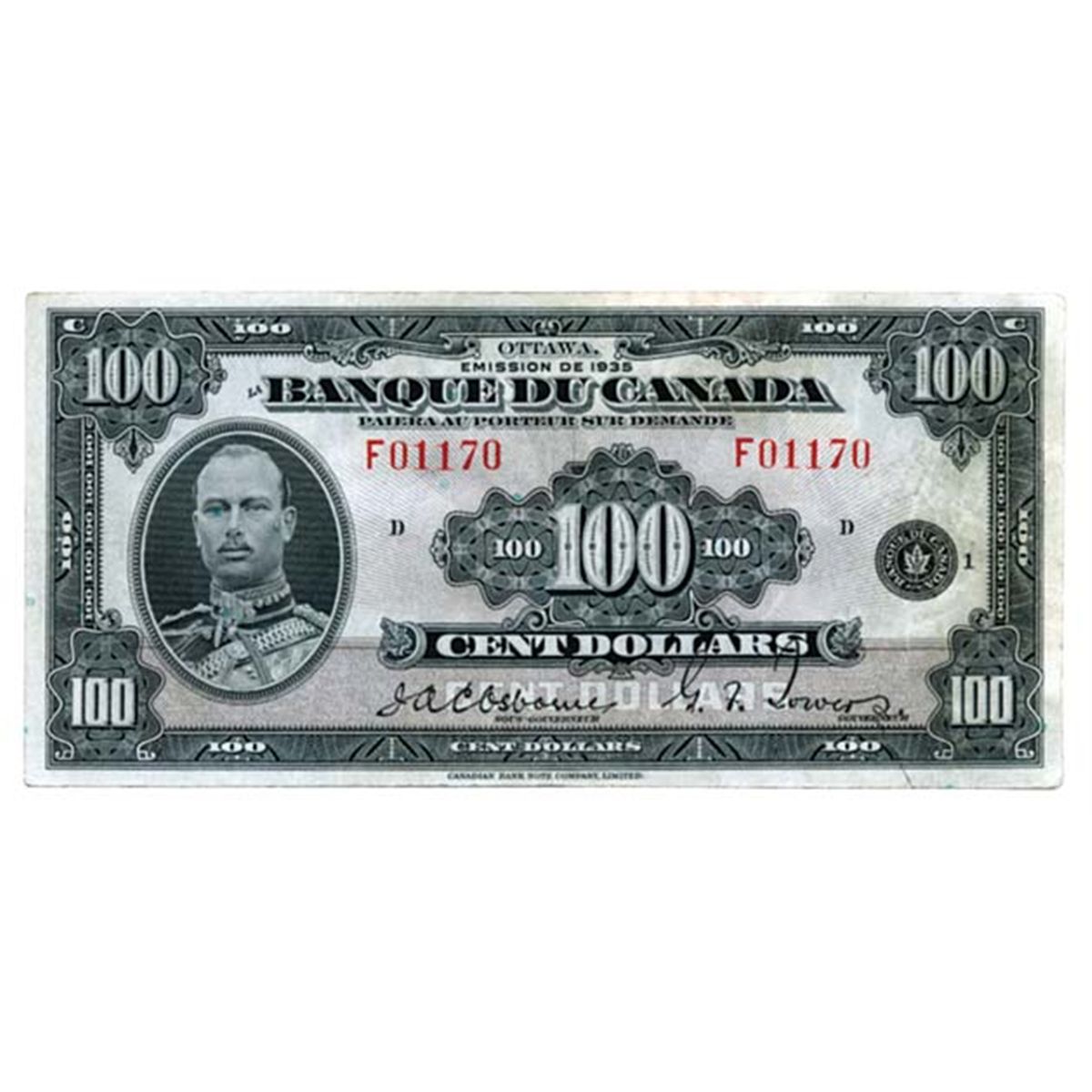 $100.00. 1935 Issue. BC-16. French Text. No. F01170. PCGS graded Very Fine-35. Bright and vibrant colours. The appearance of a higher grade than assigned.