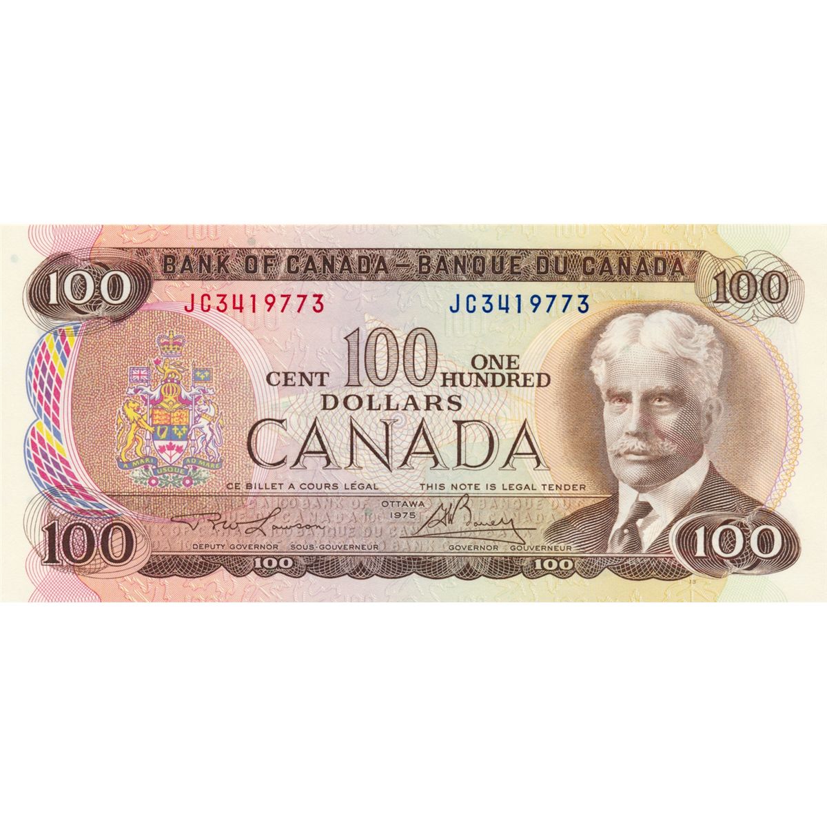 $100.00. 1975 Issue. BC-52a. Lawson-Bouey. No. JC3419773. CCCS graded Choice UNC-63.