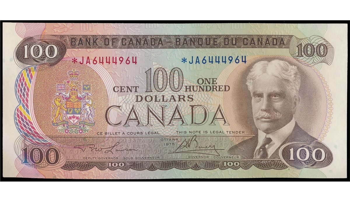 $100.00. 1975 Issue. BC-52aA. No. *JA6444964. Lawson-Bouey. Unc. A scarce replacement note.
