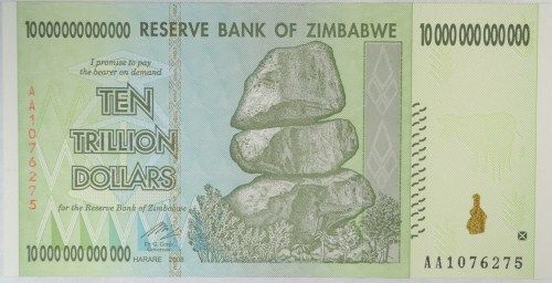 ( 10 ) 10,000,000,000,000 DOLLAR NOTES FROM THE RESERVE BANK OF ZIMBABWE, ALL ARE CRISP UNCIRCULATED, ESTIMATE $45.00 TO $55.00