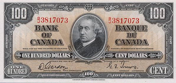 1937 Issue. BC-27b. Gordon-Towers. No. B/J3817073. BCS graded AU-55.