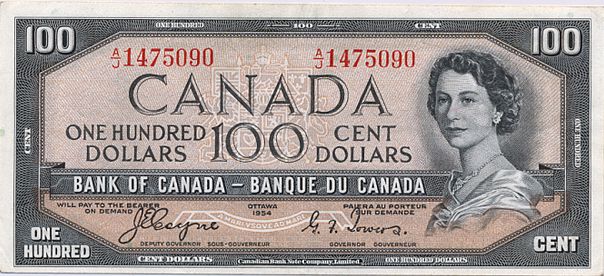 1954 Issue. BC-35a. Coyne-Towers. ‘Devil’s Face’. No. A/J1475090. PCGS graded EF-45PPQ.