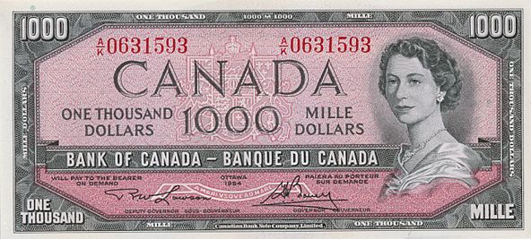 x1954 Issue. BC-44d. Lawson-Bouey. No. A/K0631593. A ;changeover’ note. BCS graded bright CU-62.