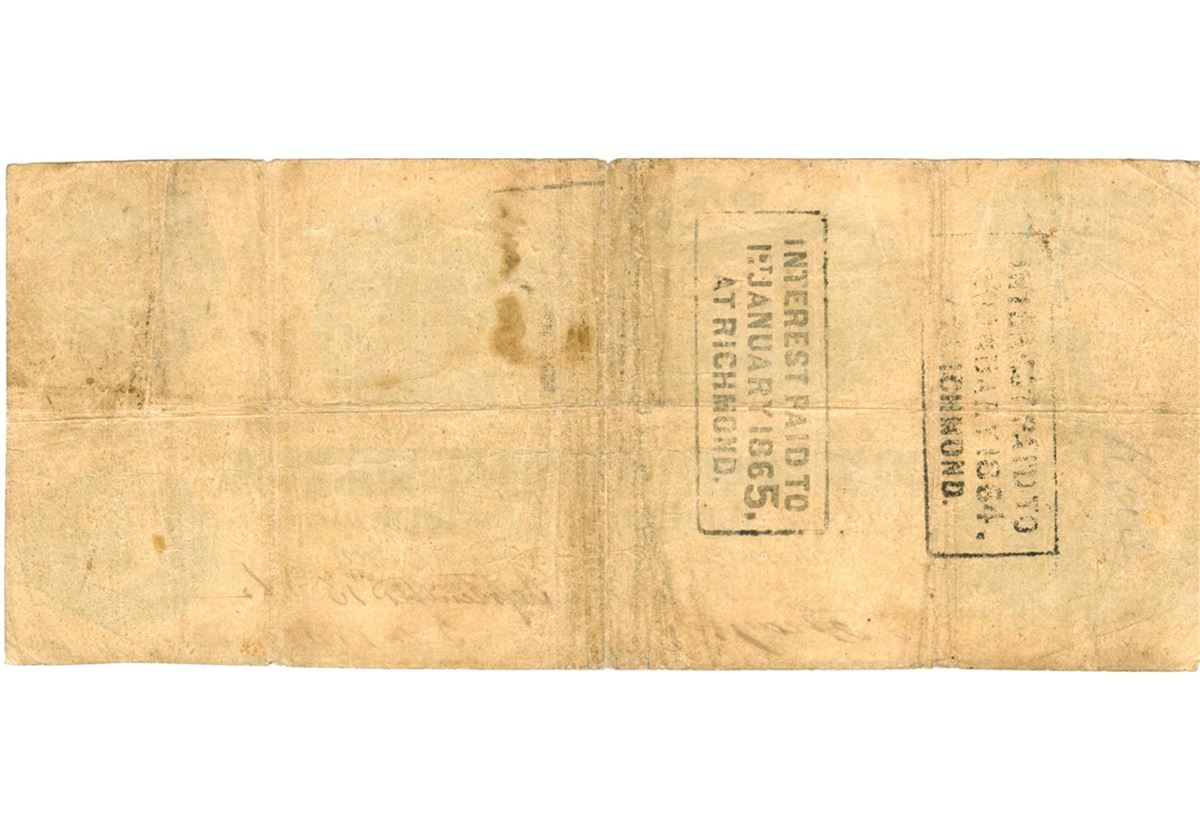 One $100 1862 Richmond Virginia Confederate States of America Large Note.