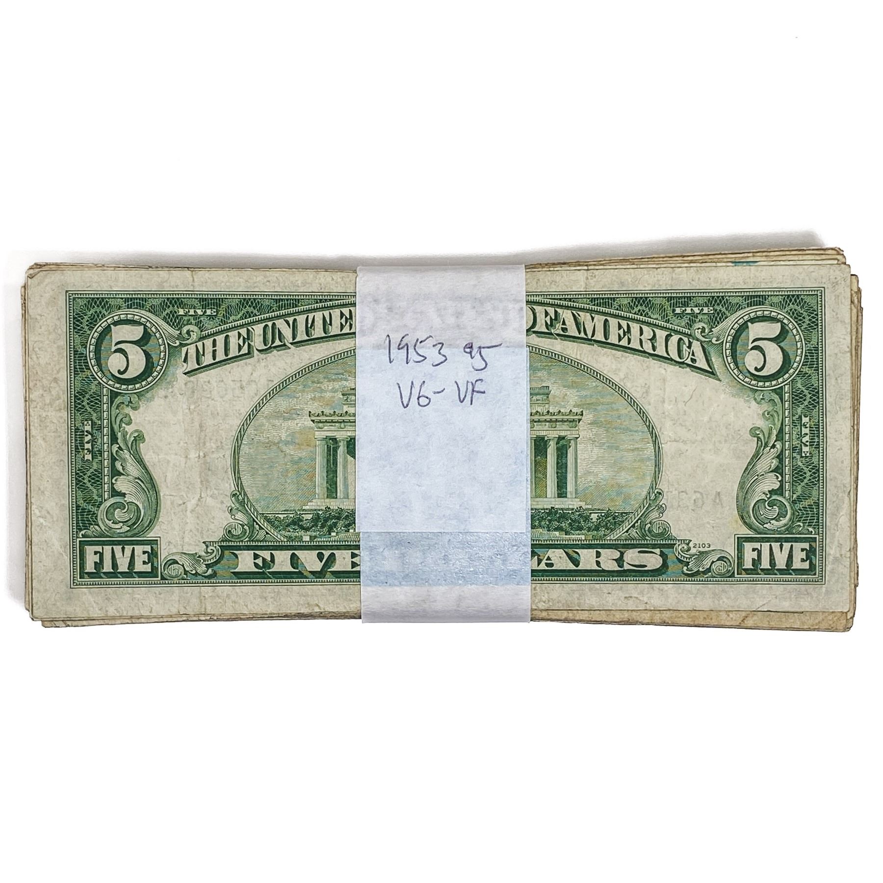 (100) 1953 $5 SILVER CERTIFICATES VG-VF