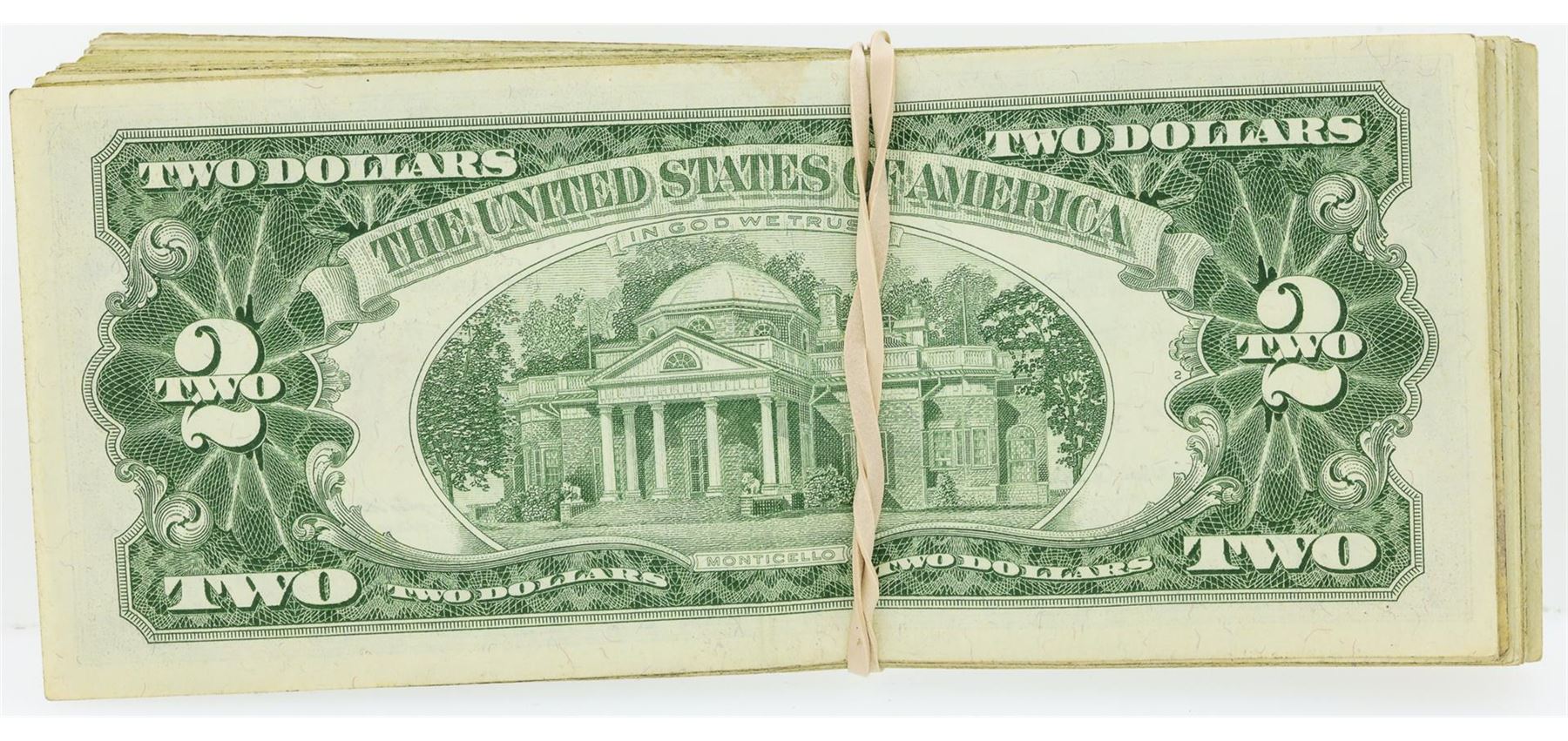 A lot of (100) 1963 $2 Red Seal Legal Tender Notes Circulated