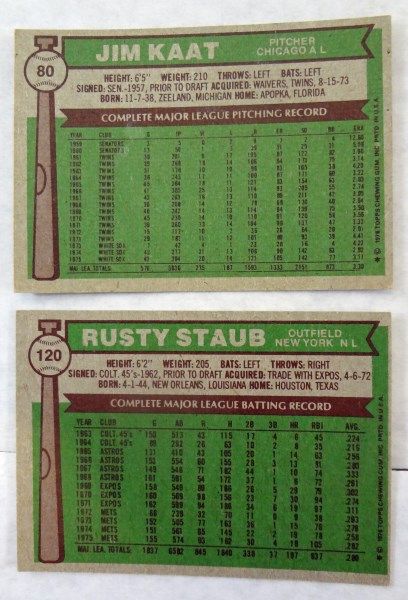 INCLUDES: RUSTY STAUB, KAAT, KOOSMAN, PERRY, FRED LYNN, OLIVA, AND OTHER MINOR STARS
