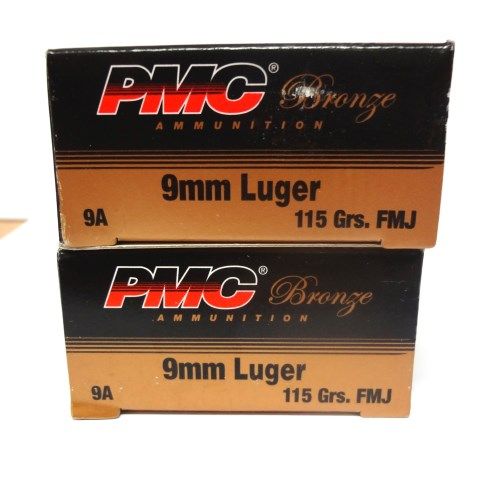 100 ( 50 ) PER BOX, ROUNDS OF PMC 115gr FMJ 9mm AMMUNITION