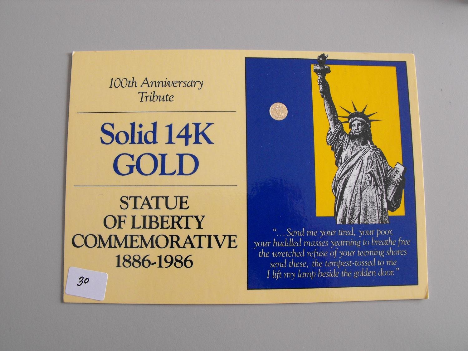 100 ANNIVERSARY SOLID 14K LIBERTY 1886-1986