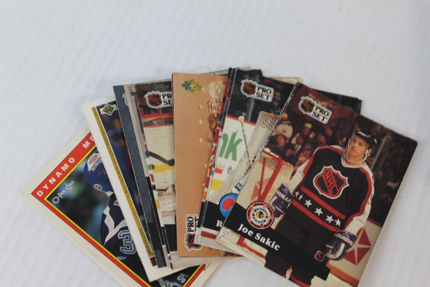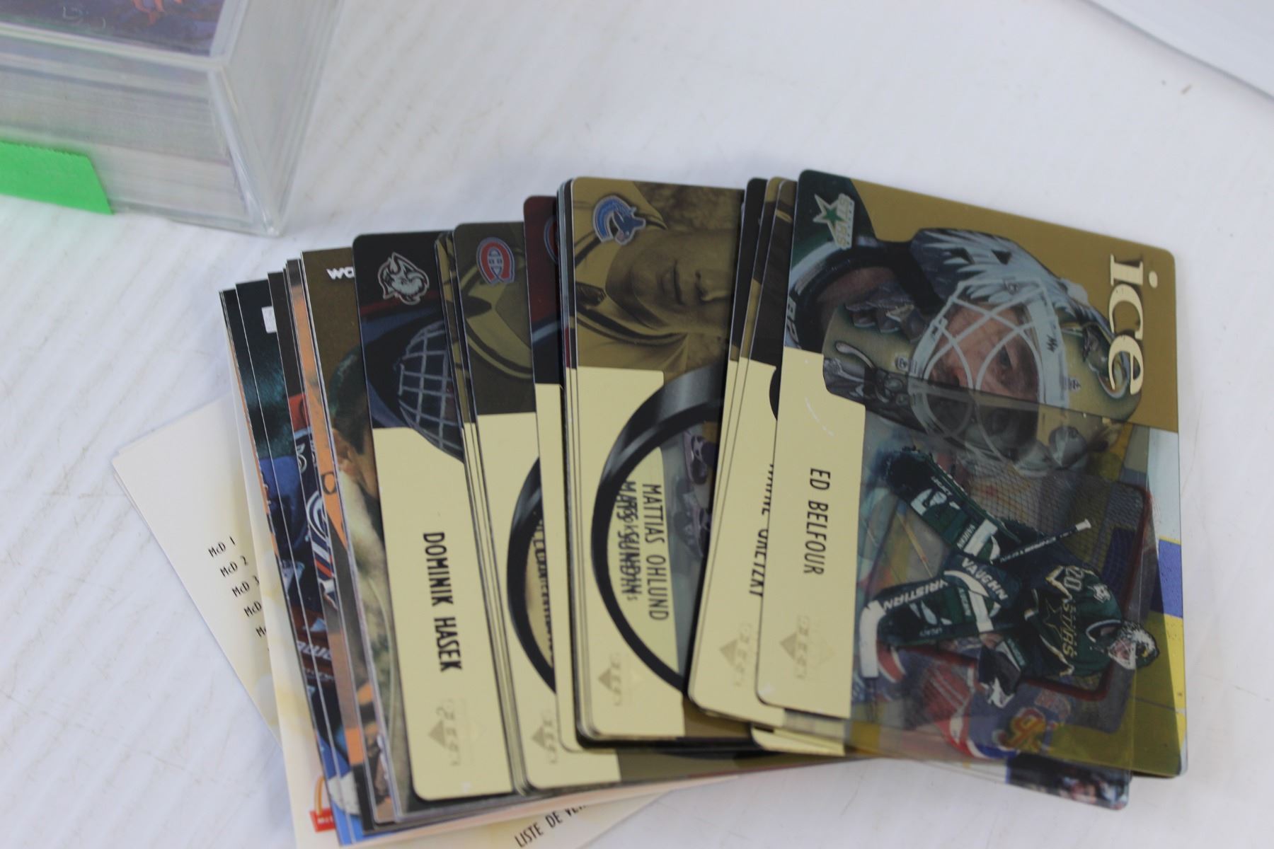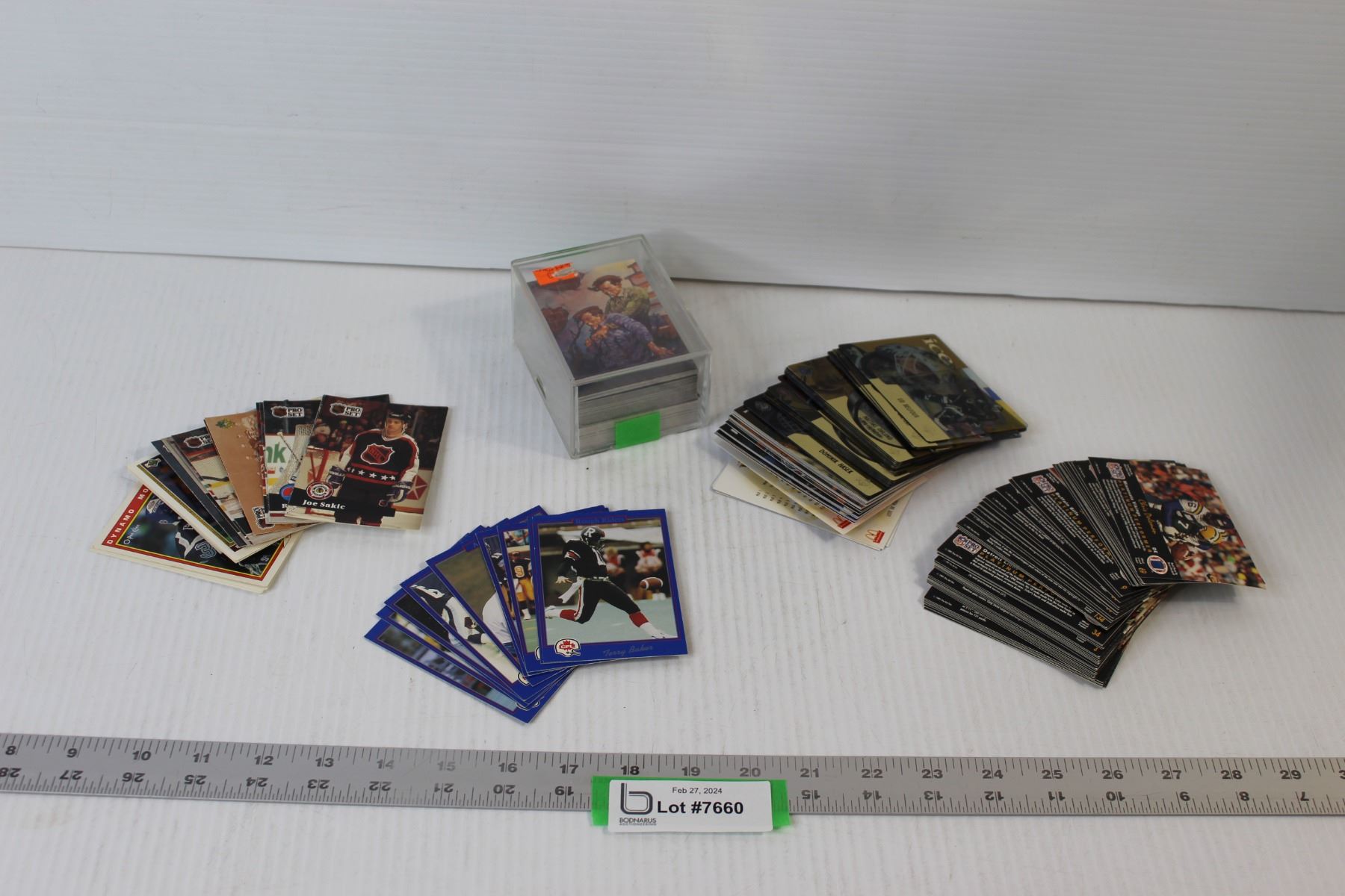100+ Assorted Hockey & Football Cards, Deck of Cards in Plastic Container