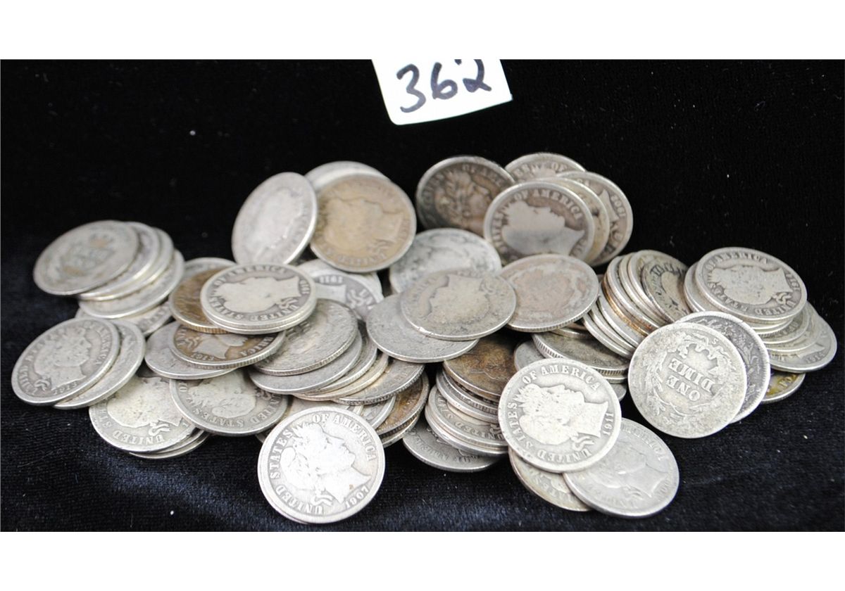 100 BARBER DIMES FROM SAFE DEPOSIT - MIXED DATES AND MINTS - SOLD PER COIN TIMES 100