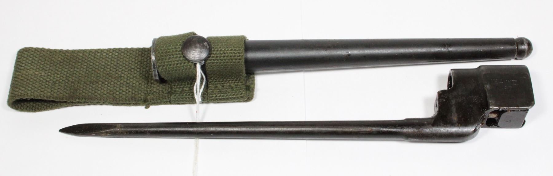 SPIKE BAYONET W/ SCABBARD AND FROG COLD WAR ERA BROAD ARROW MARKED UNITED KINGDOM ENGLAND CANADA COMMONWEALTH EMPIREFOR ENFIELD RIFLE KOREAN WAR LEE ENFIELD