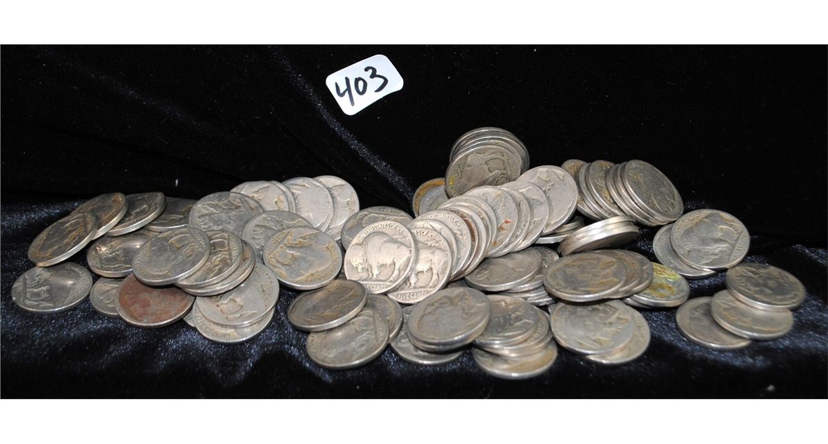 100 BUFFALO NICKELS FROM SAFE DEPOSIT - MIXED DATES AND MINTS