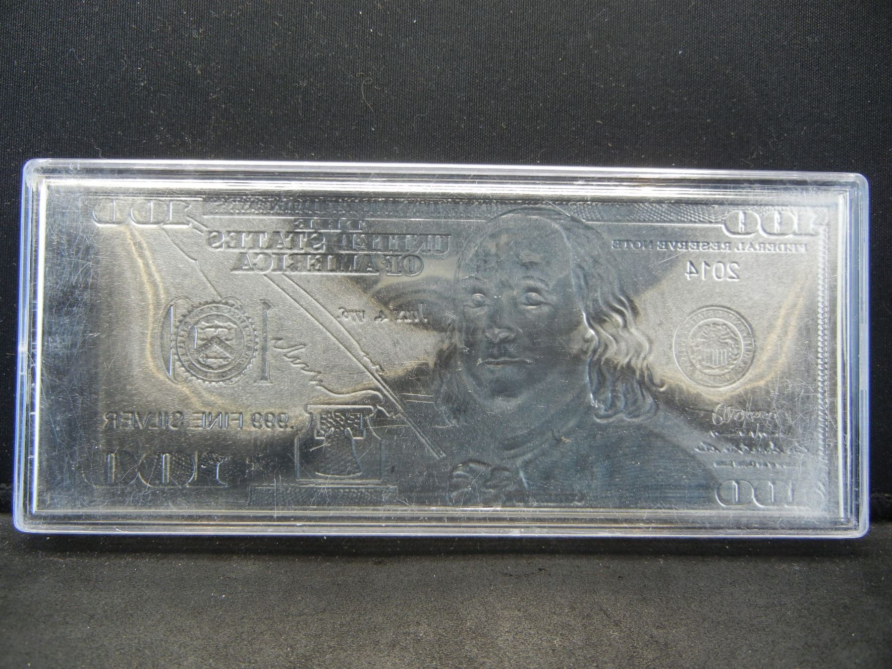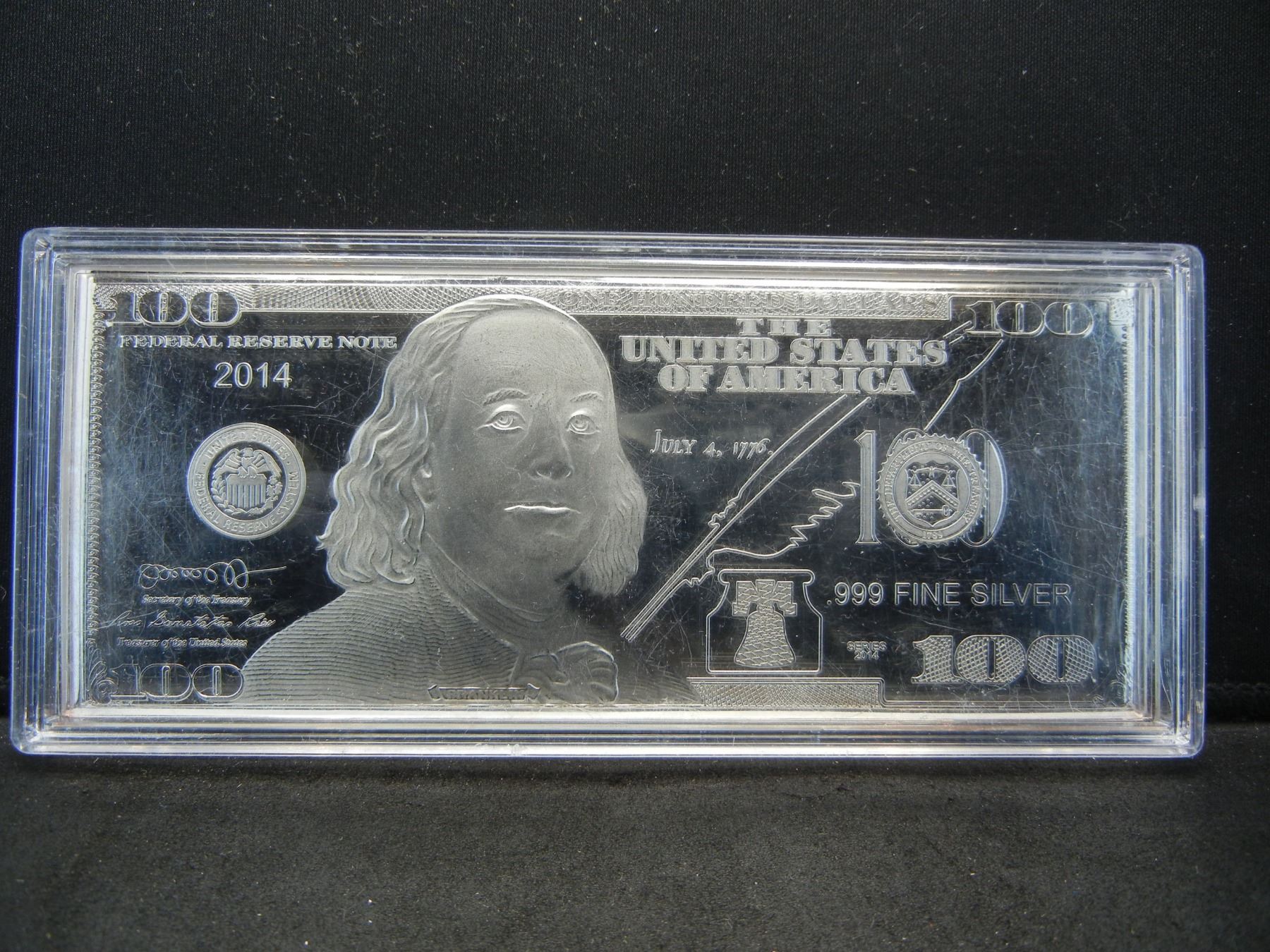 $100 Bill of 1 ounce 999 SILVER PURE. Cameo Proof