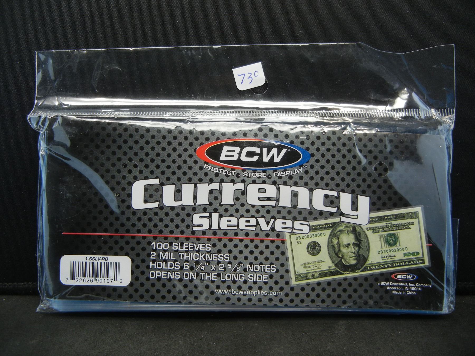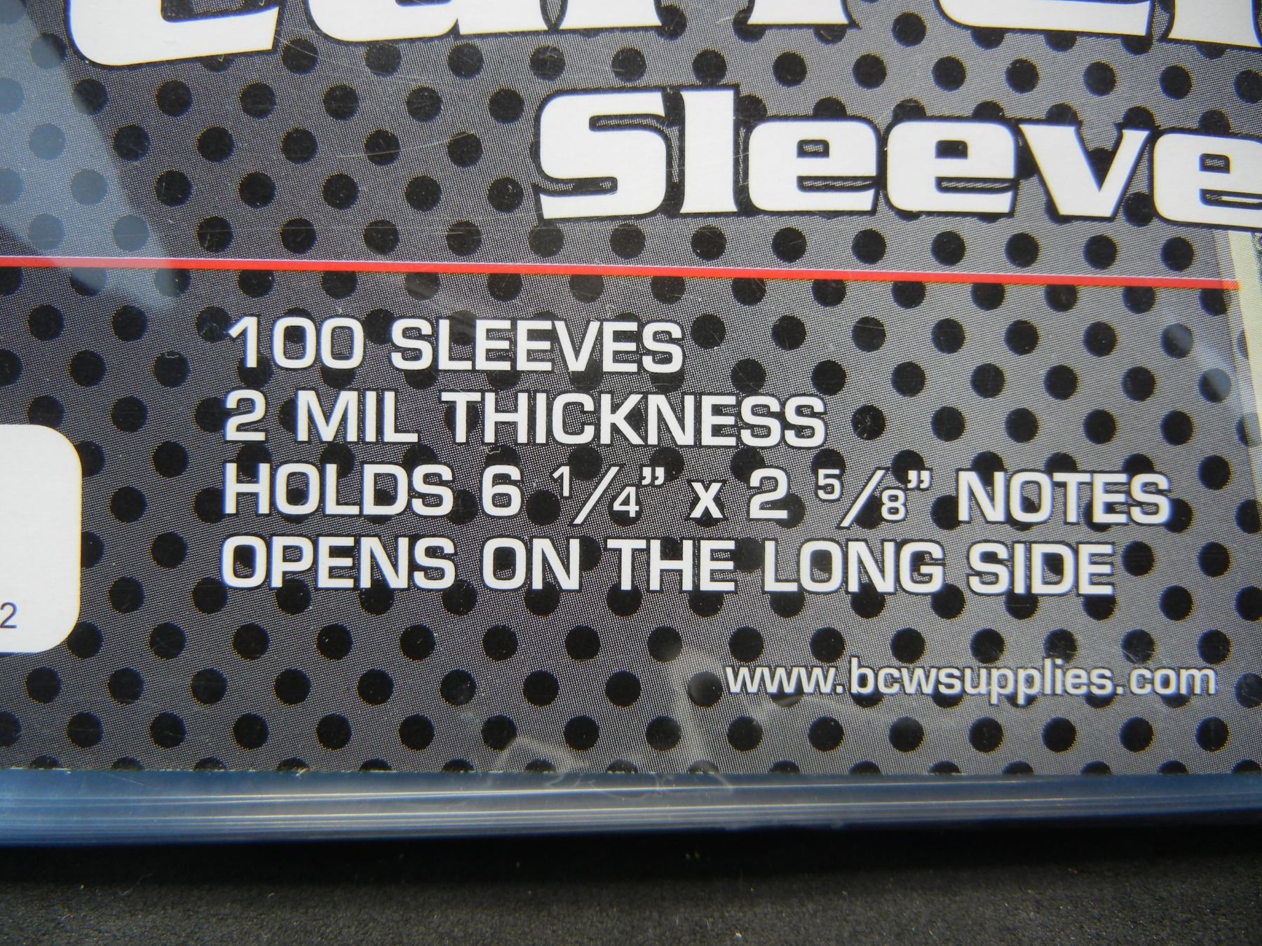 100 CURRENCY SLEEVES (2 MIL THICKNESS), NEW/SEALED!