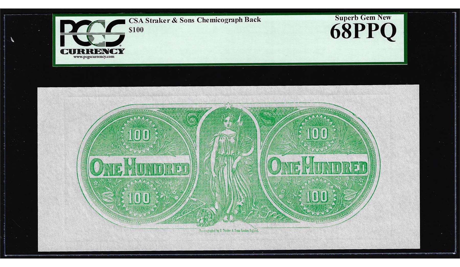 $100 Chemicograph Back Confederate Currency Note PCGS Superb Gem New 68PPQ