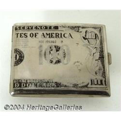 $100 Cigarette Case. A half-size case in very nice condition. All of the elements function perfectly and the internal springs are both present. This is either a left-handed model or an invert--you get your choice. <BR><BR><B>Important notice:</B> Heritage usually auctions material at the rate of 200-250 lots per hour. On some occasions eBay Live bid software or the Internet may not be able to keep up with the pace of the auction. We recommend placing a realistic absentee bid now as insurance to avoid disappointment. Occasionally the auctioneer may eliminate or reject an eBay Live bid, and the auctioneer may also reopen a lot after the close of the eBay live bidding (usually because we missed an audience bid), and may reject your bid even if it shows you as the winning bidder. By bidding via eBay Live, you agree that Heritage may award the lot to another bidder at its sole discretion under the circumstances described above or any other reasonable circumstances. Since eBay bids are not shown to us until we open the lot on the floor, we treat those bids just like floor bids. In most cases the floor responds before the eBay bid is presented to us, due to Internet lag time, so for consistency we have made it a policy that floor bids are always considered first over tie eBay live bids. Also please note that all Heritage lots purchased through eBay Live carry a 20% Buyer's Premium. Please make sure you read the Terms and Conditions before you bid. <BR><BR><B>IMPORTANT ANNOUNCEMENT ABOUT RESERVES:</B> Heritage now divulges all reserves on its web site 7 days before every auction. If you want to know whether the reserve on this lot has been met, and if not, what the reserve amount is, please visit this lot page on the HeritageCoin.com web site, or email: bid@HeritageGalleries.com