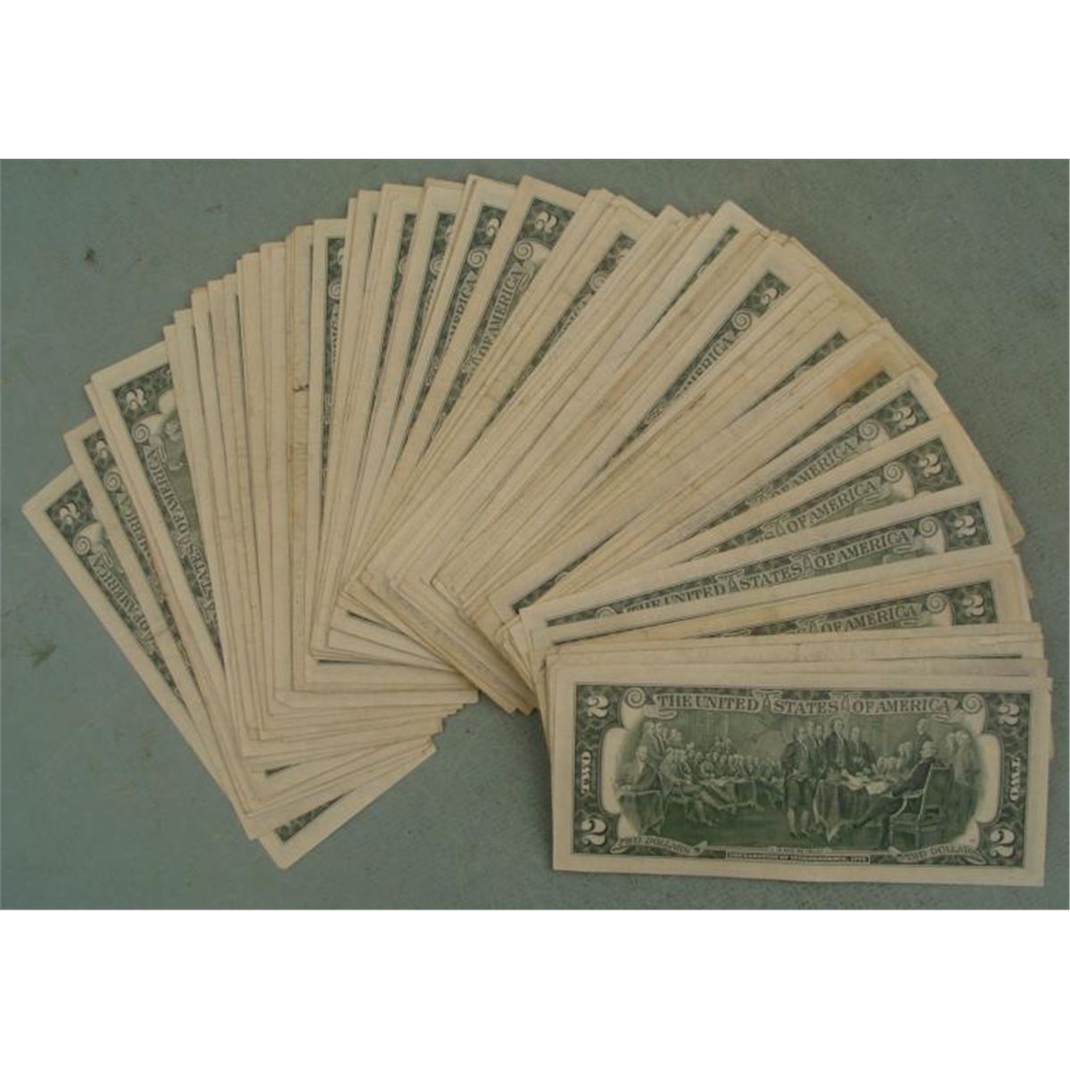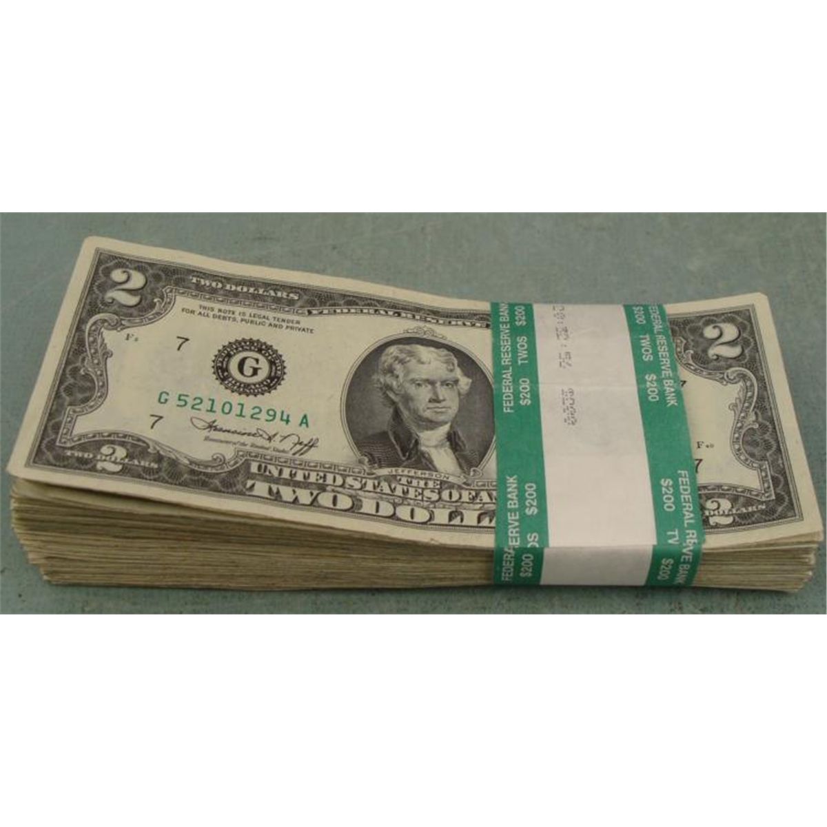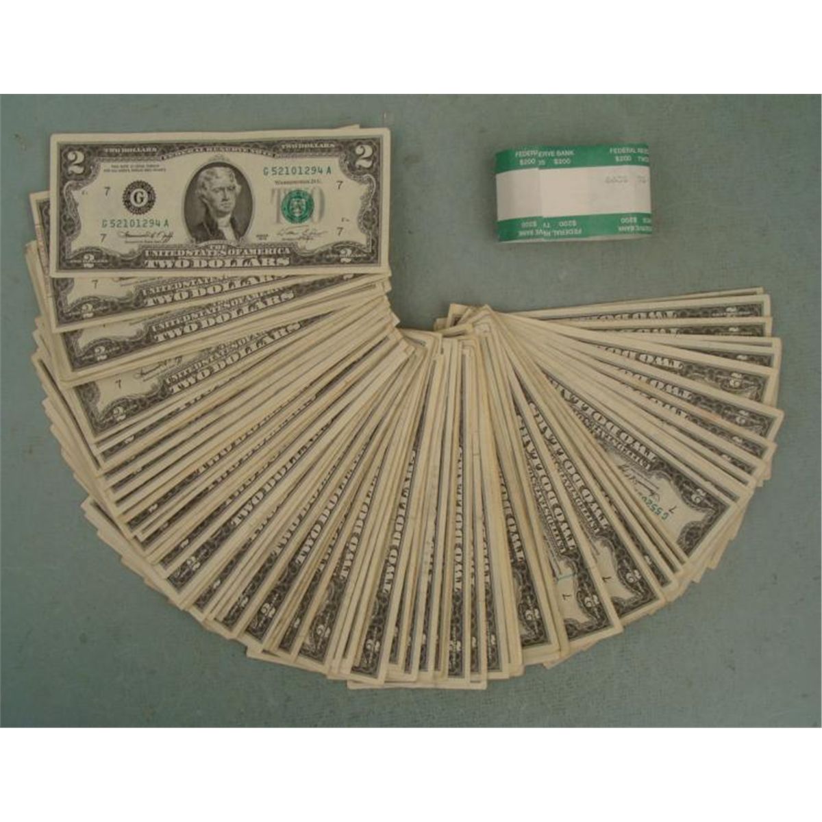 (100) 1976 $2 notes * Condition: All are very nice bills- some bank counter-stamped, and many Uncirculated Mint mark: G (Chicago) * *